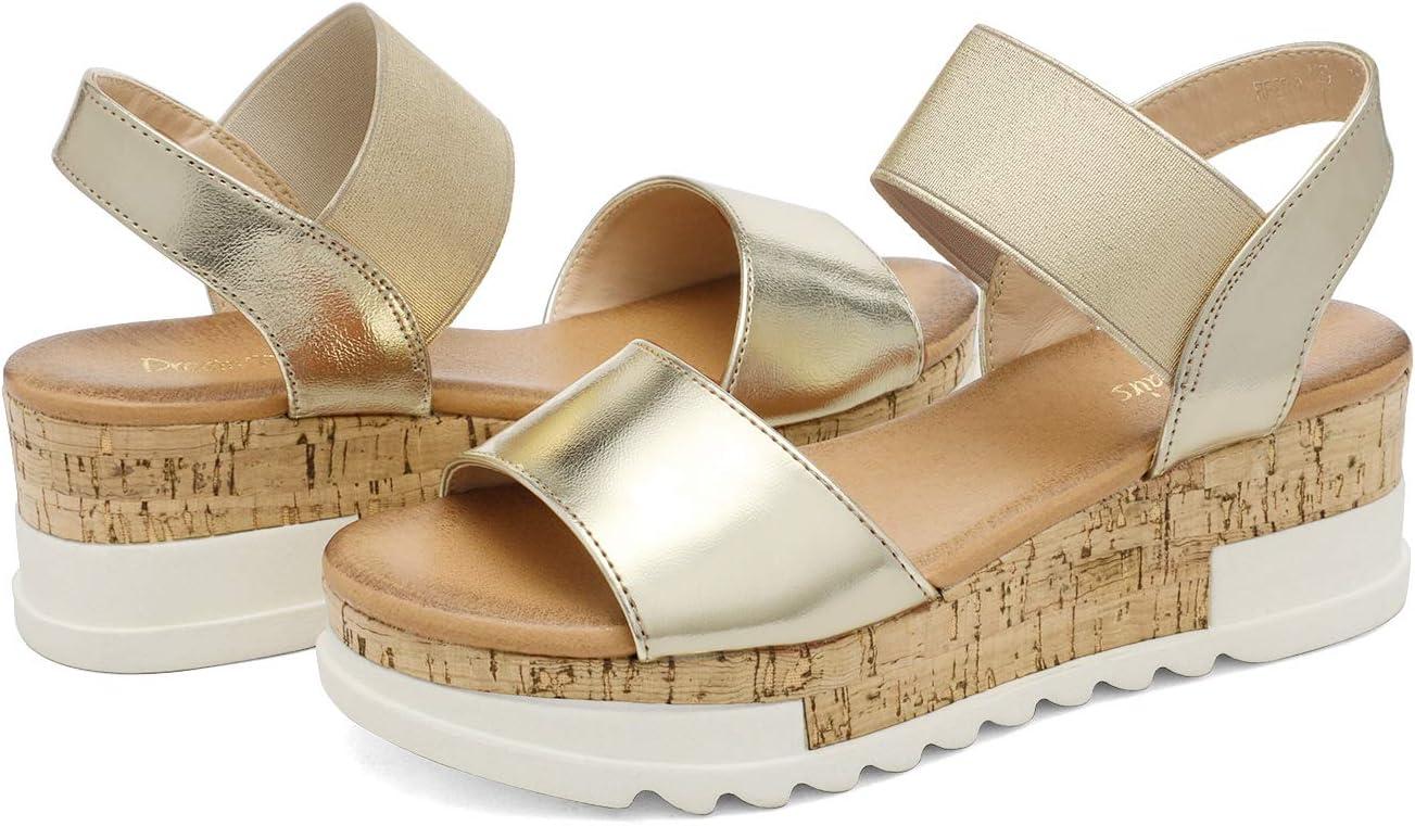 DREAM PAIRS Women’s Open Toe Casual Platform Sandals(Gold)