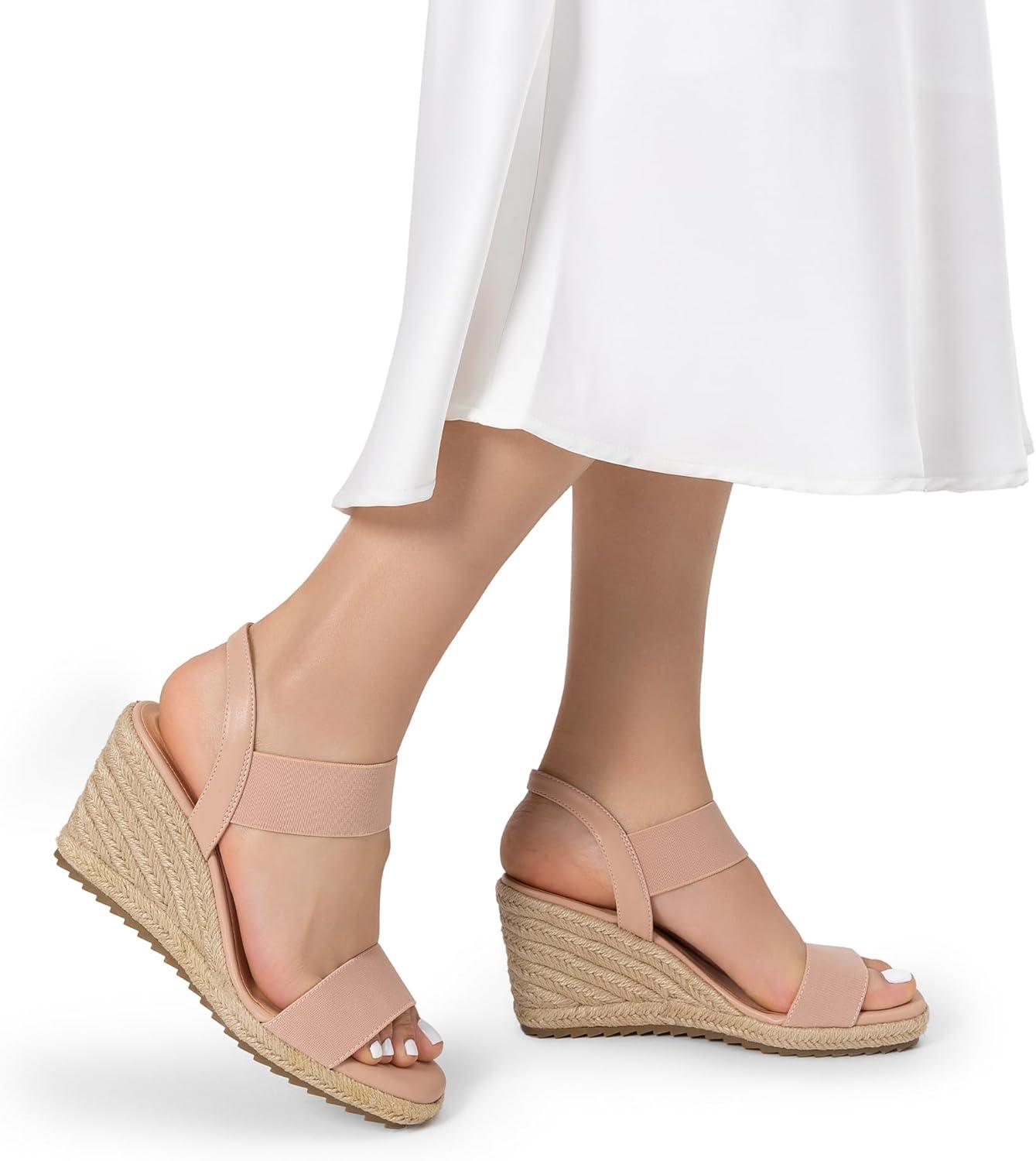 DREAM PAIRS Womens Open Toe Espadrilles Dressy Platform Sandals Slip on Elastic Ankle Strap Wedges Sandals(Blush)