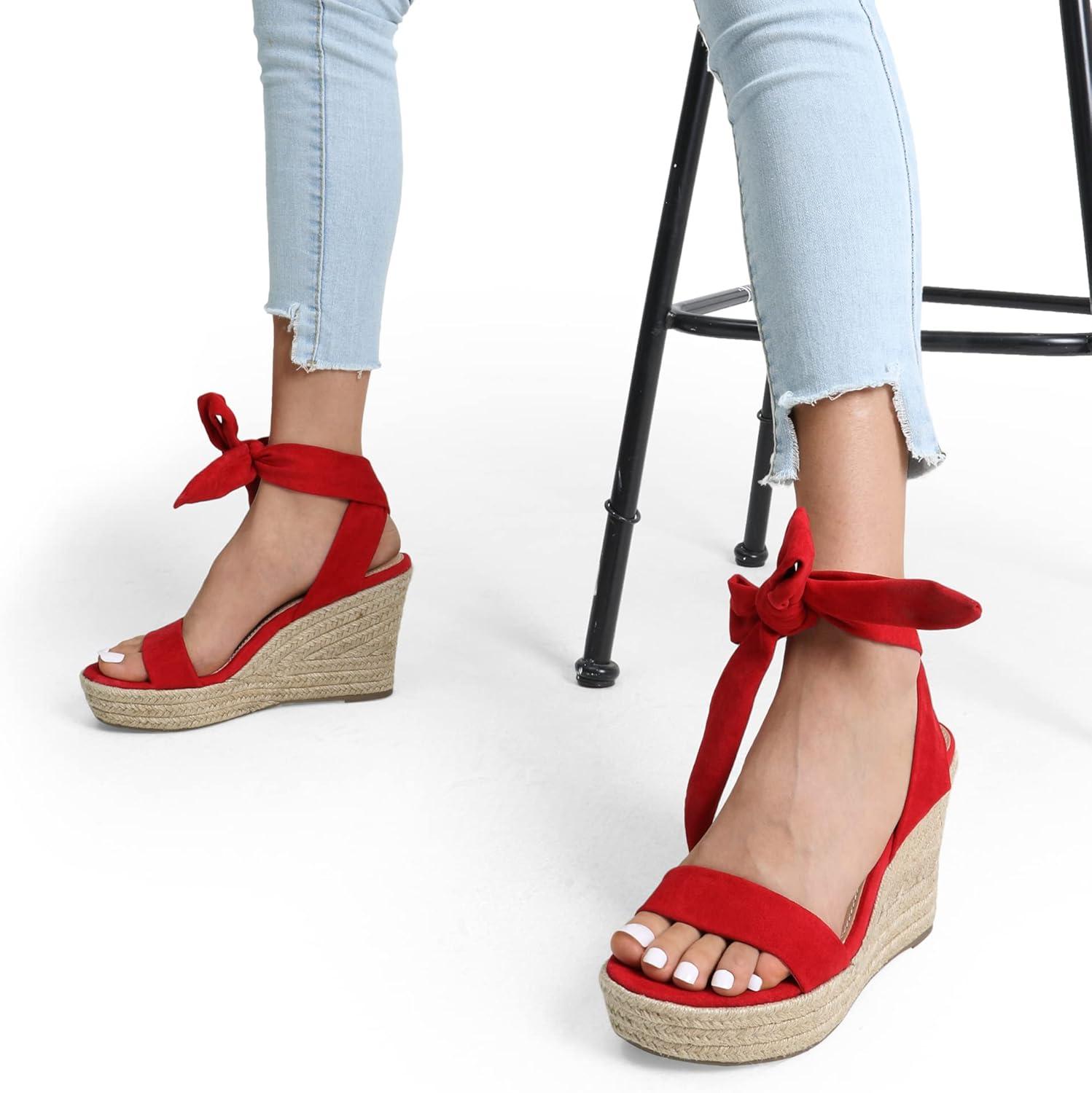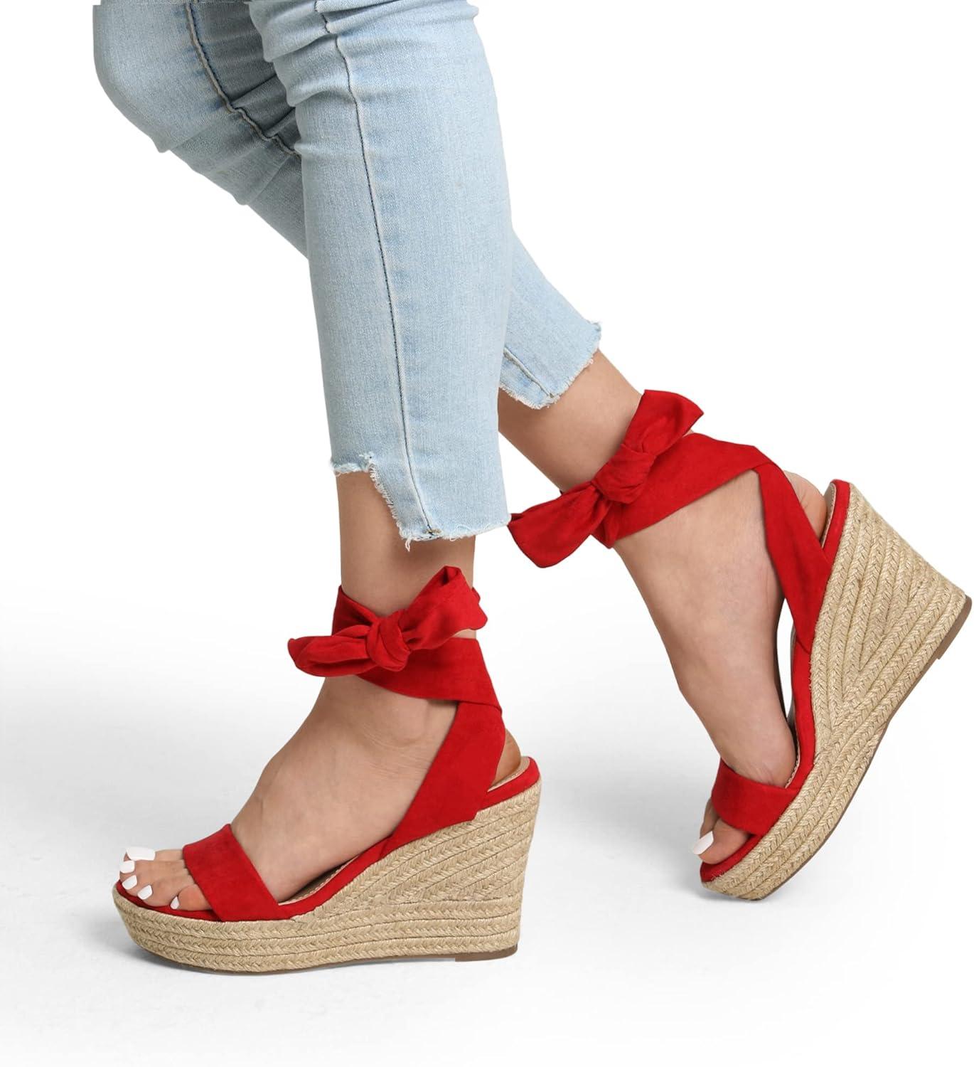 DREAM PAIRS Womens Open Toe Espadrilles Wedges Tie Lace Up Cute Ankle Strap Platform Sandals Dressy Shoes(Red)