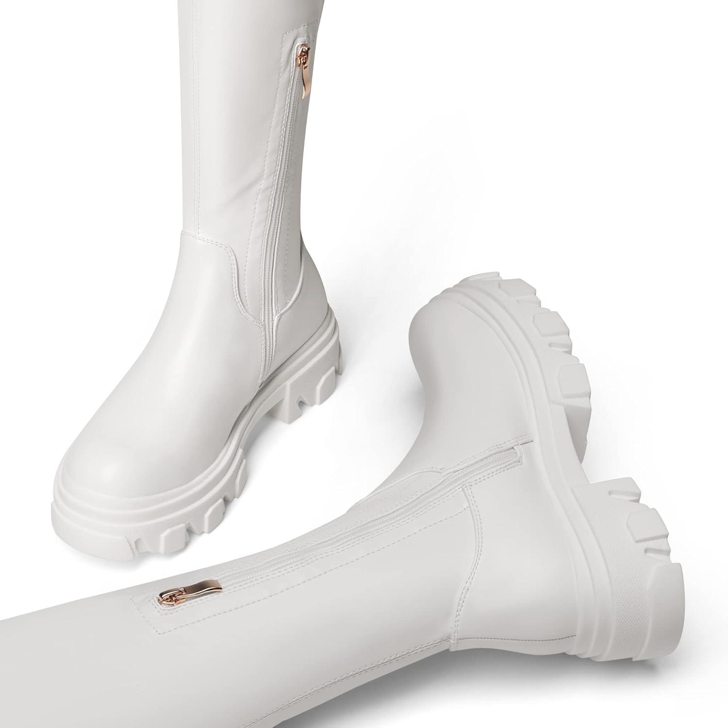 DREAM PAIRS Women’s Over The Knee Platform Thigh High Boots Long Stretch Soft Chunky Lug Sole Fall Boots(White/Pu)