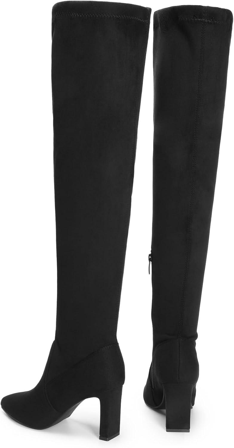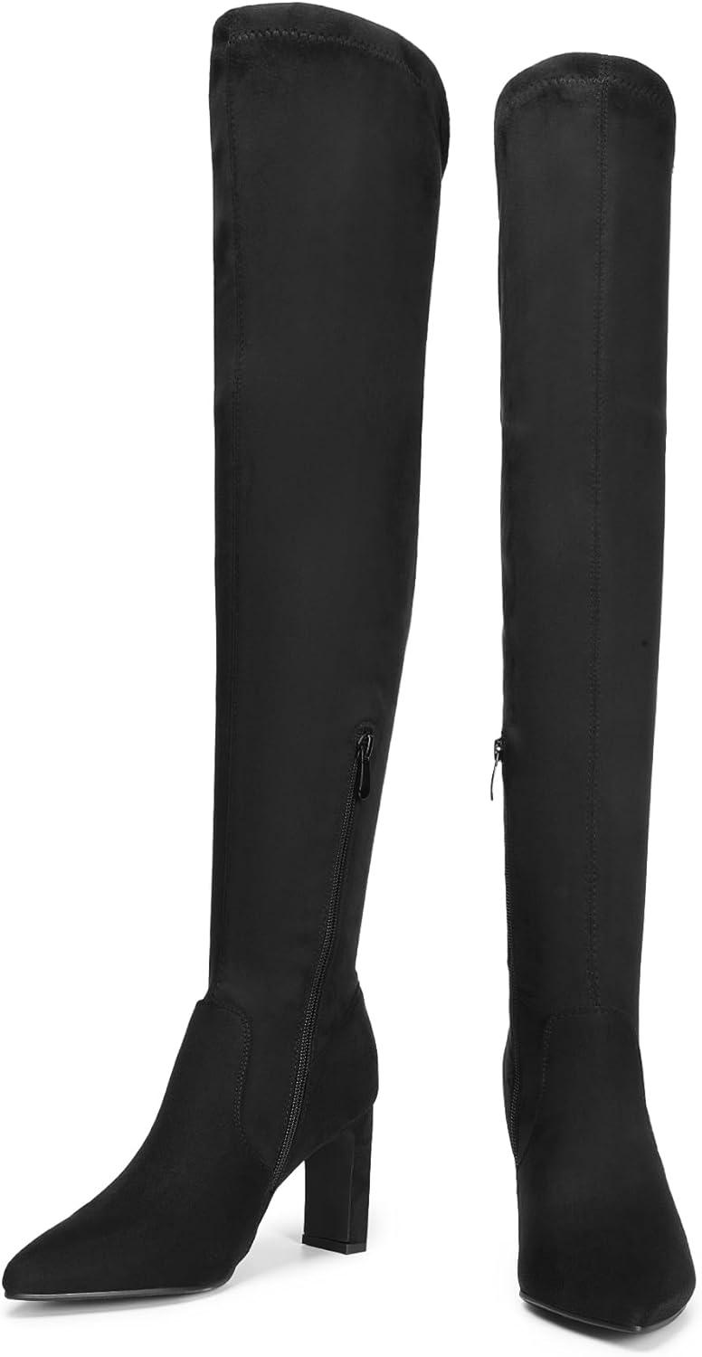 DREAM PAIRS Women’s Over The Knee Stretch Thigh High Boots Chunky High Heels Pointed Toe Long Fall Boots(Black-suede)