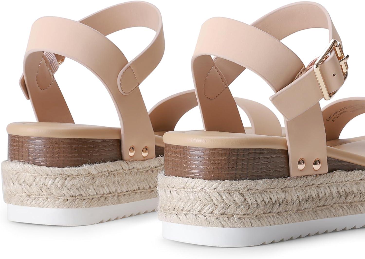 DREAM PAIRS Women’s Platform Espadrilles Wedge Sandals, Comfortable Open Toe One Band Sandals for Women Dressy Casual Summer(Nude)