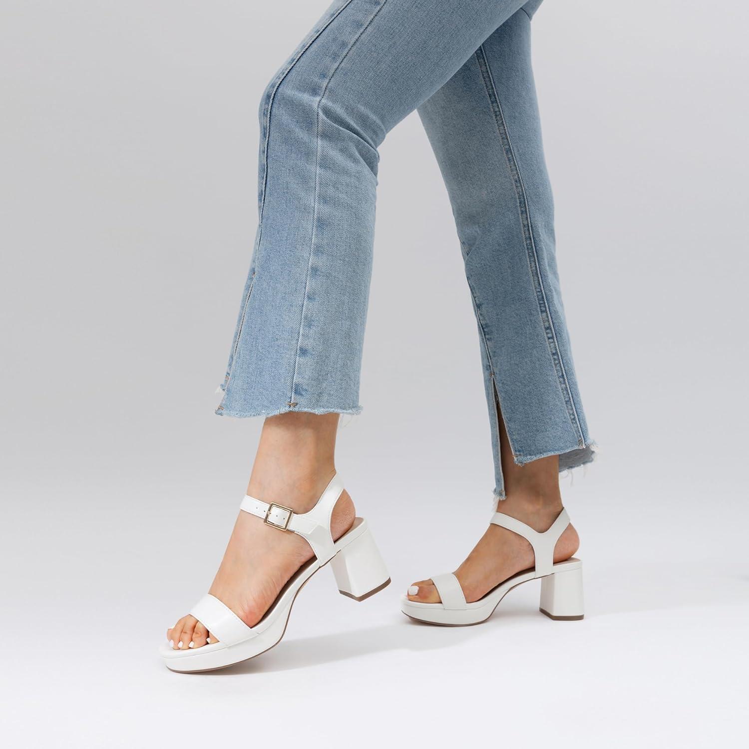 DREAM PAIRS Women’s Platform Heels Block Chunky Open Toe Ankle Strap Heel Fashion Wedding Party Dress Sandals Shoes(White)