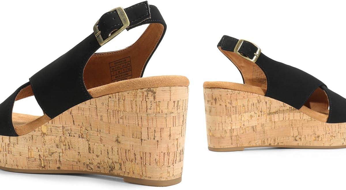 DREAM PAIRS Women’s Platform Wedge Heel Sandals Comfortable Ankle Strap Sandals for Women Casual Dressy Summer,Size 10,Black-Nubuck,SDPW2411W