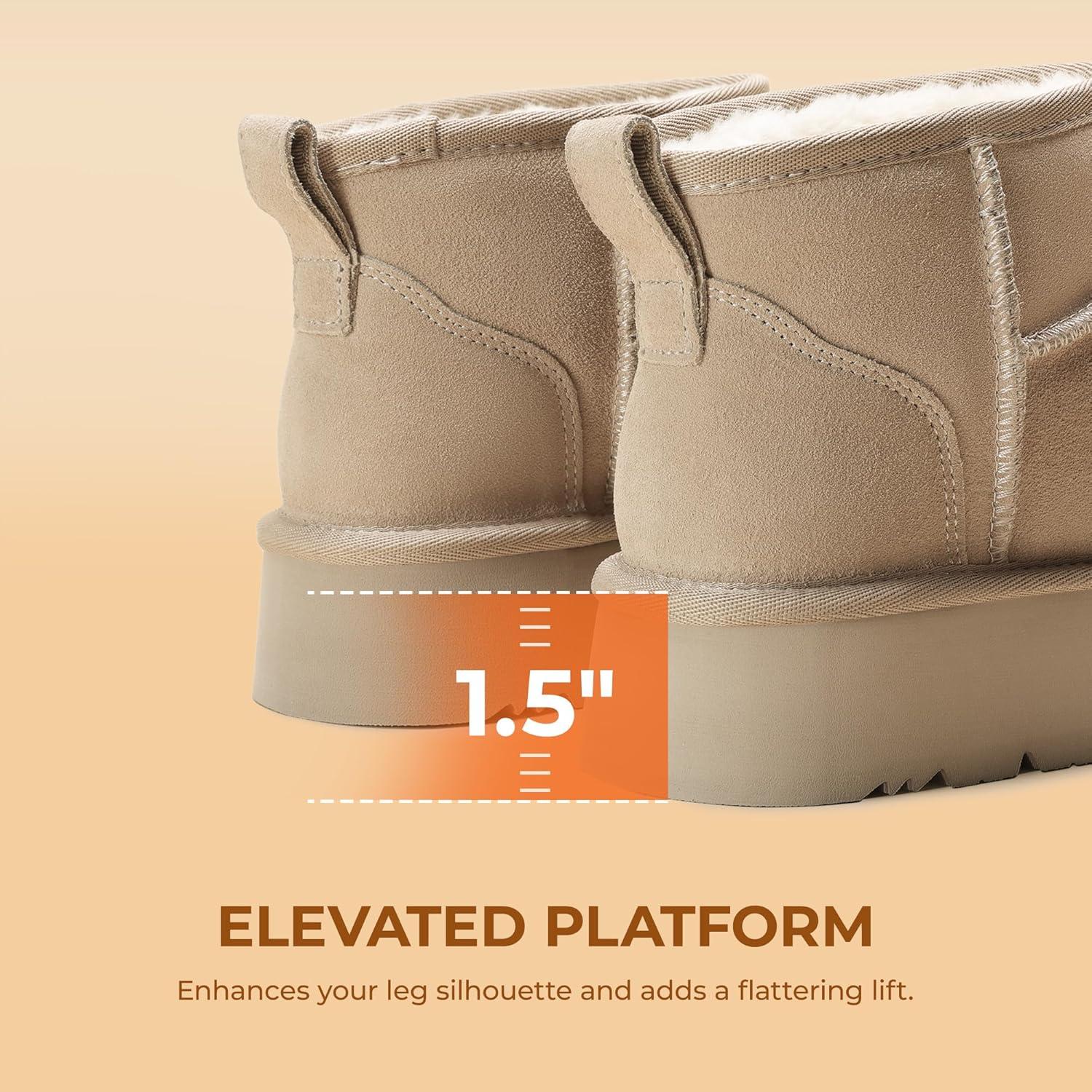 DREAM PAIRS Women’s Platform Winter Snow Boots Genuine Suede, Water Resistant Mini Ankle Boots Stable Lightweight Booties Anti-Slip with Memory Foam Outdoor Fuzzy(Sand)