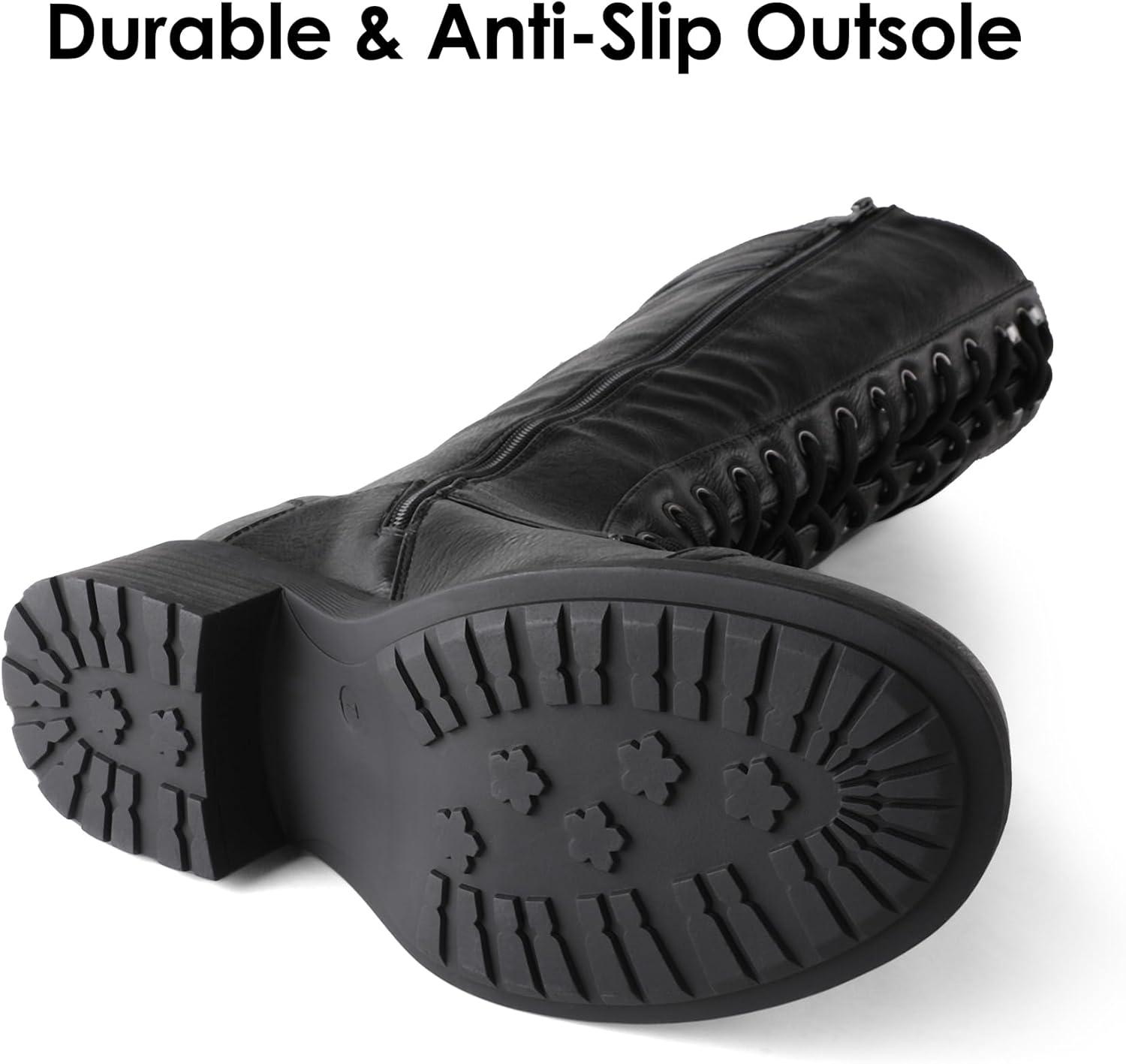 DREAM PAIRS Women’s Pu Knee High Riding Combat Boots(Georgia-black)