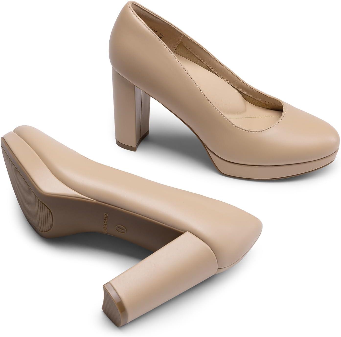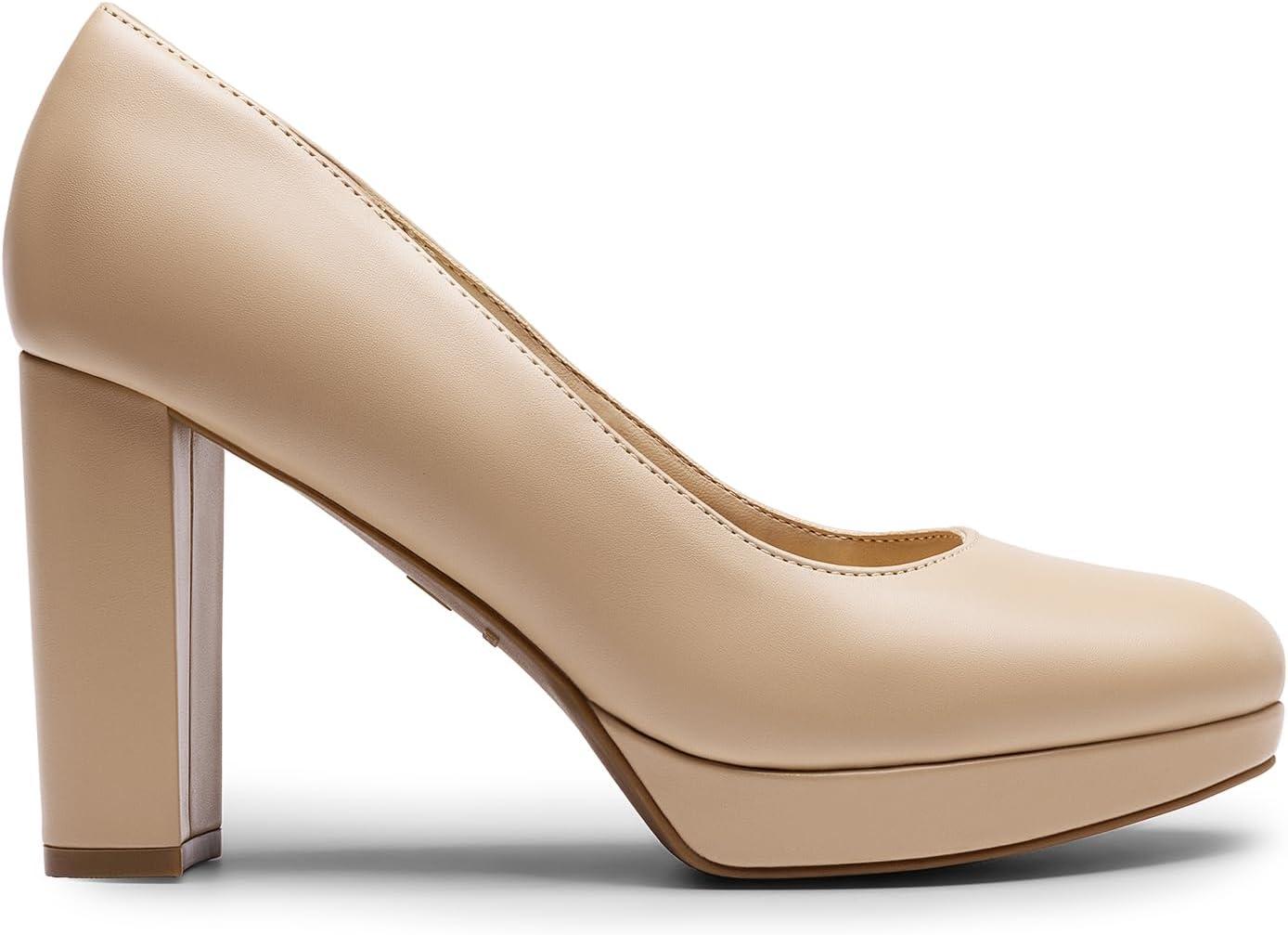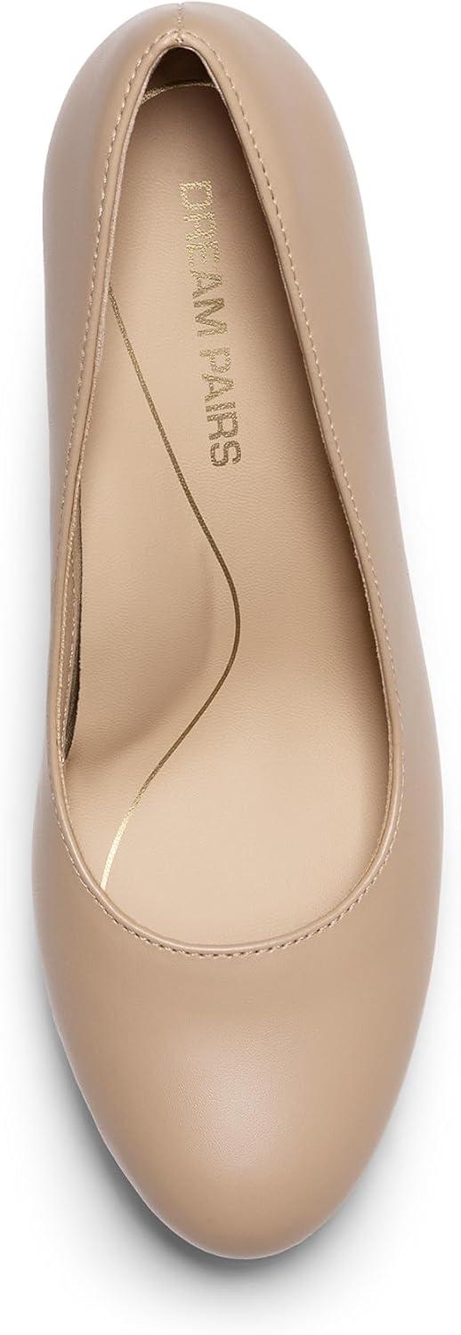 DREAM PAIRS Women’s Pumps Closed Round Toe Chunky High Heels Platform Work Comfortable Dress Shoes for Women(Nude-pu)