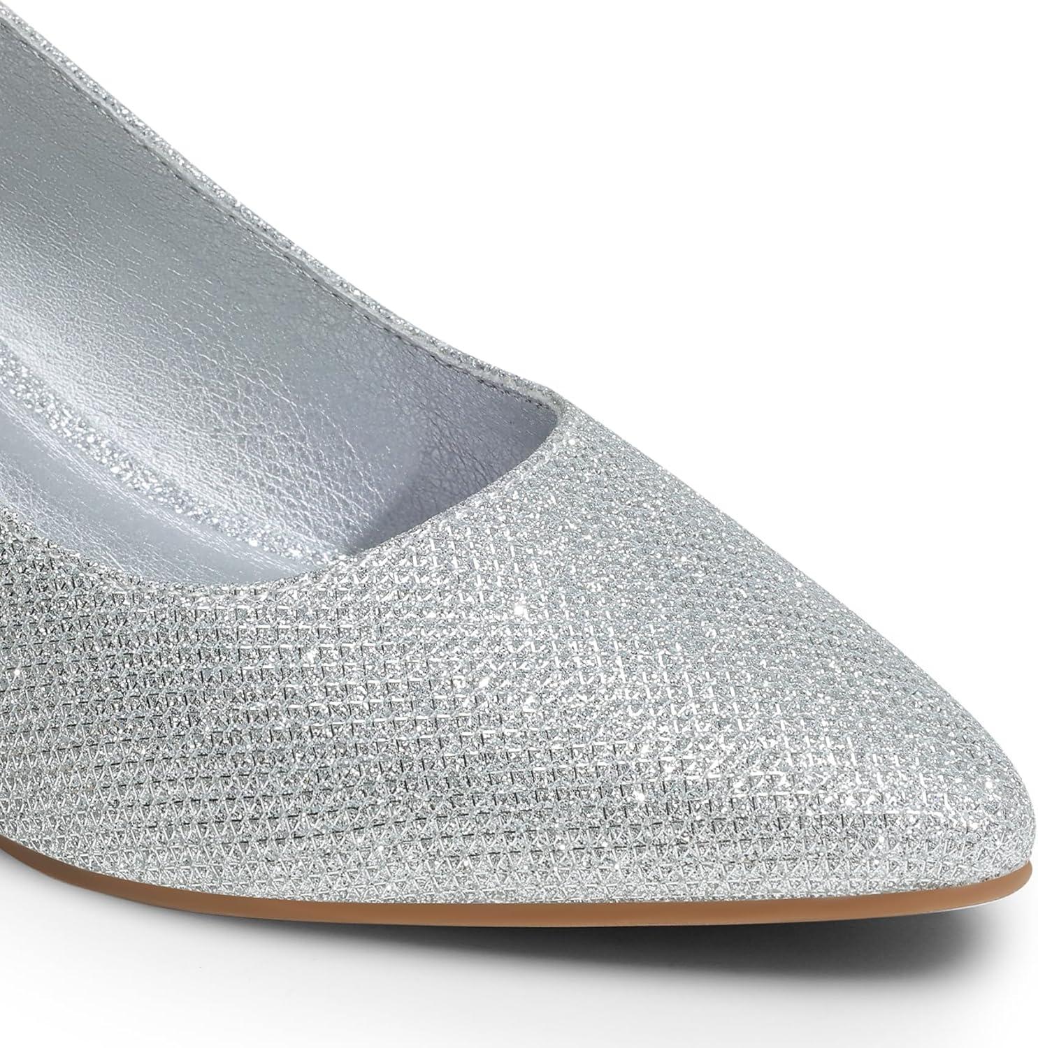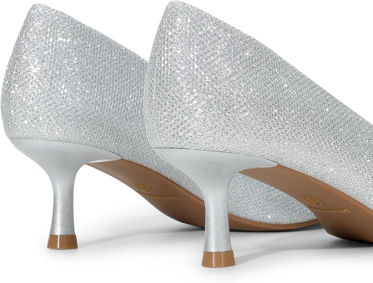 DREAM PAIRS Women’s Pumps Closed Toe Pointed Toe Kitten Heels for Women Party Dance Wedding Dress Shoes for Women(Silver)