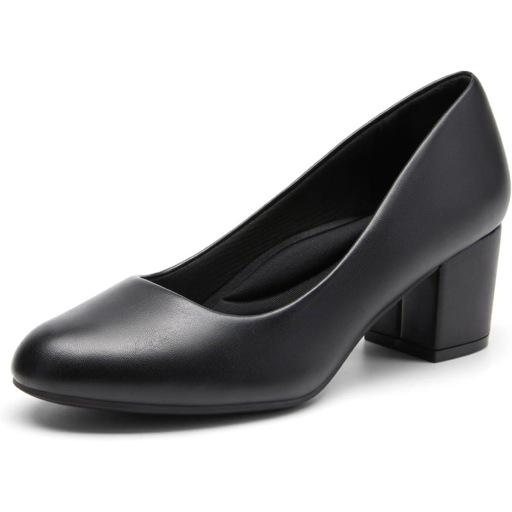 DREAM PAIRS Women’s Pumps Low Chunky Block Heel Dress Shoes Closed Round Toe Comfortable Heels(Black-pu)