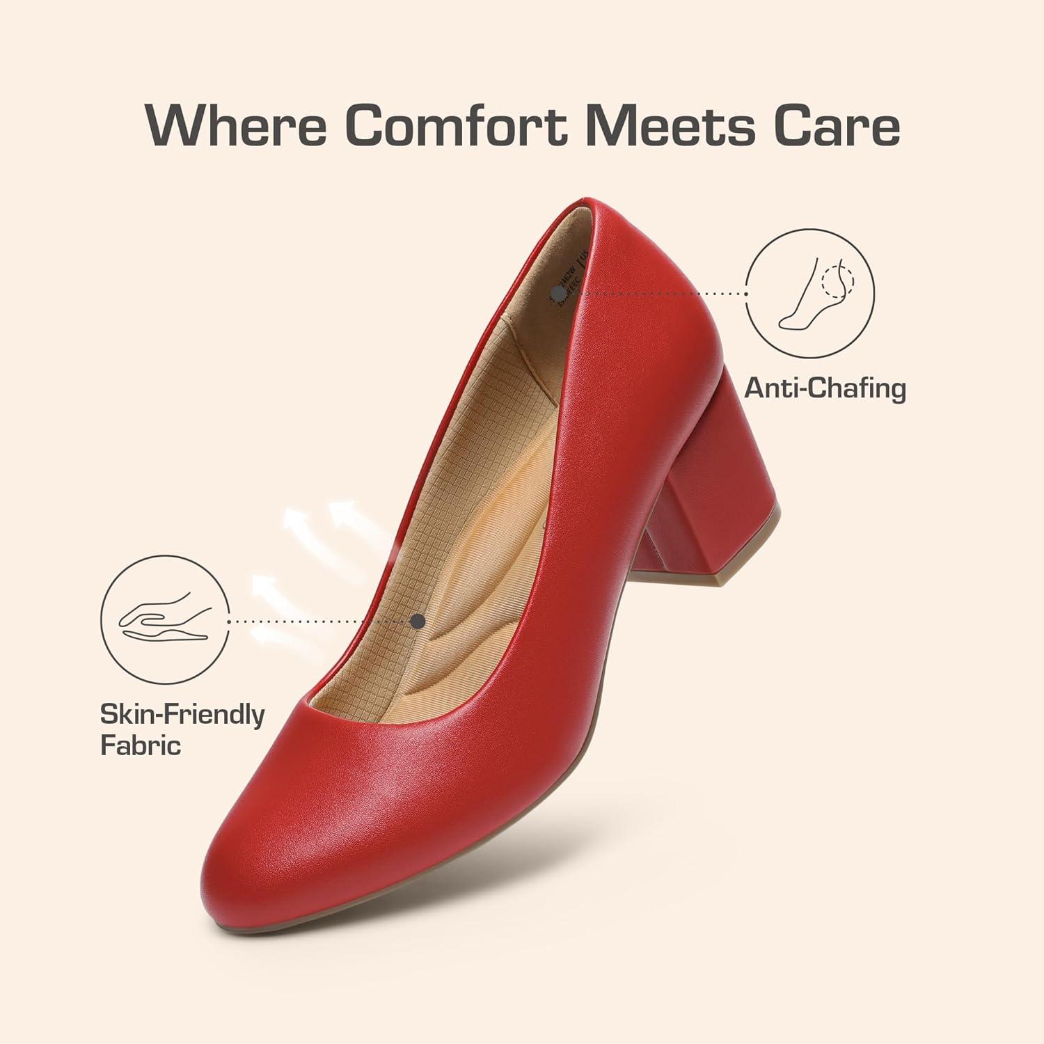 Experience comfort with these pumps for women featuring a 3D massage insole, soft vegan leather upper, and skin-friendly lining. The non-slip TPR outsole ensures stability, while the retro square toe adds elegance. These pumps shoes women are perfect for commuting, parties, and daily wear.