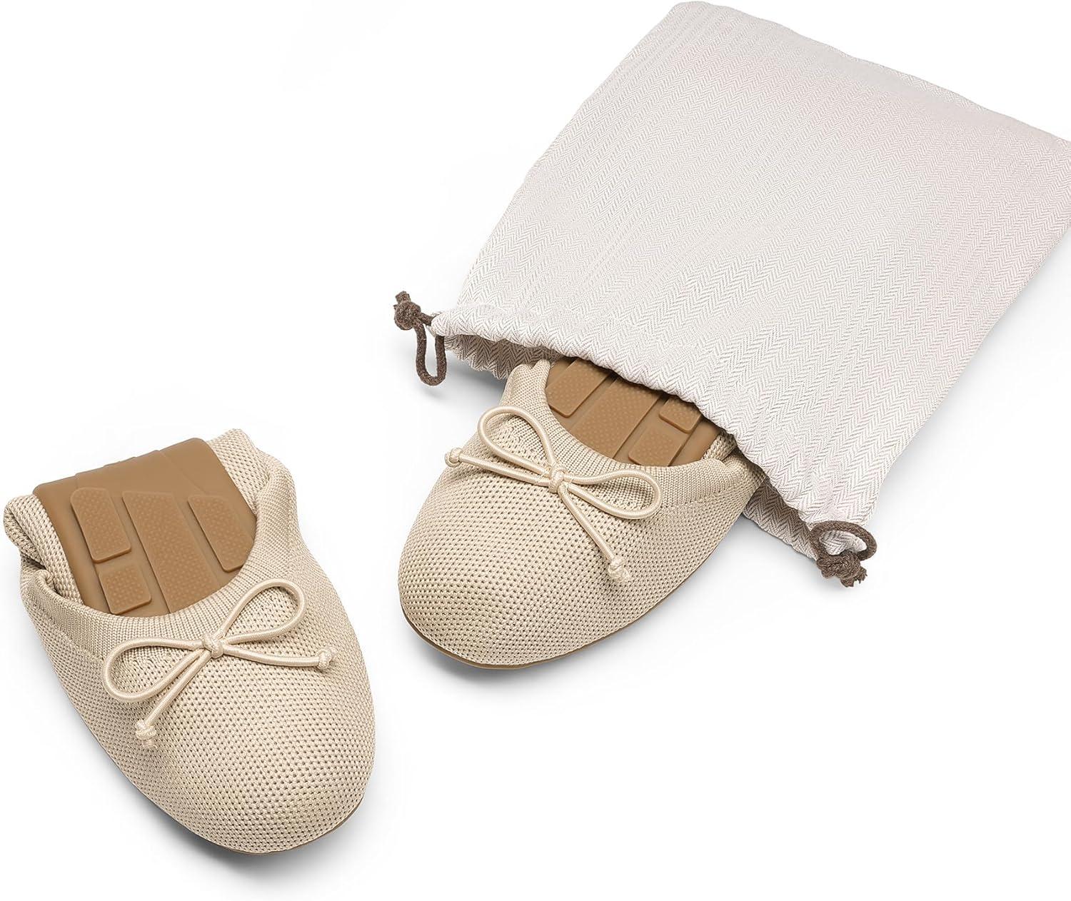 DREAM PAIRS Women’s Round Toe Foldable Portable Knit Ballet Flats Comfortable Dressy Flats for Work Office Dress Shoes Business Casual(All Nude)