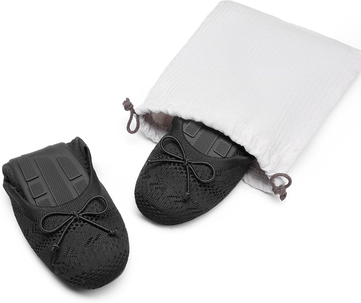 DREAM PAIRS Women’s Round Toe Foldable Portable Knit Ballet Flats Comfortable Dressy Flats for Work Office Dress Shoes Business Casual(Black)