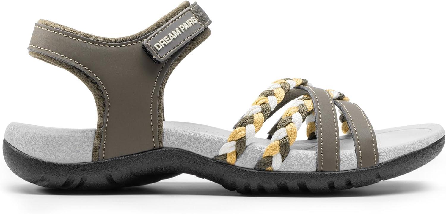 DREAM PAIRS Womens Sandals Light Weight Hiking Sandals for Women Comfortable Athletic Quick-Drying Walking Hiking Water Sandals(Khaki)