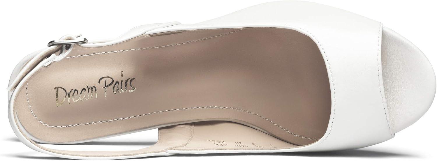DREAM PAIRS Women’s Sexy High Chunky Heels Peep Toe Platform Block Slingback Dress Pumps Shoes(White/Pu)