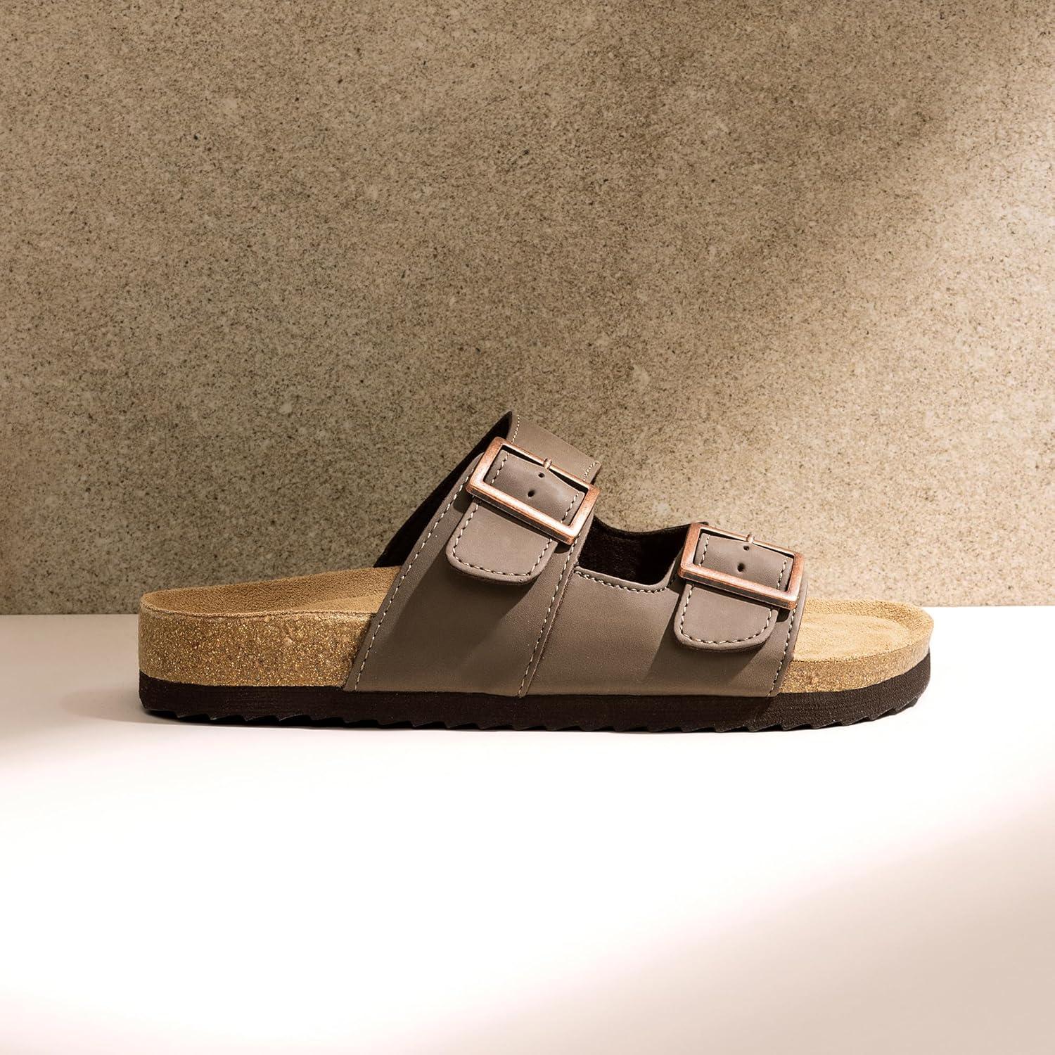 DREAM PAIRS Womens Slide Sandals Cork Footbed Open Toe Adjustable Flat Sandals Comfort Slip On Slippers for Summer(Brown)