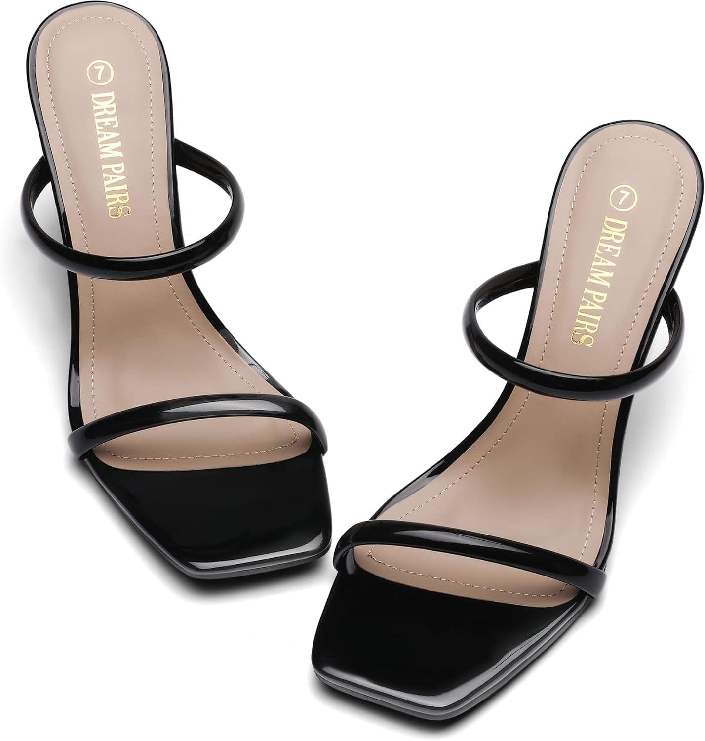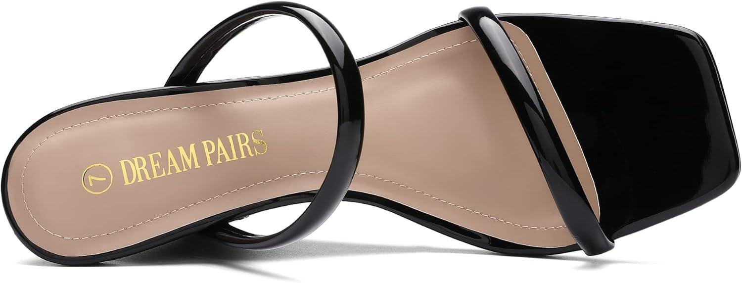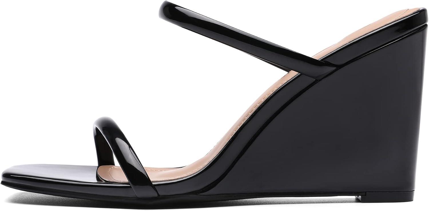 DREAM PAIRS Women’s Slides Wedge Sandals Two Strap Square Open Toe Dress Shoes(Black)