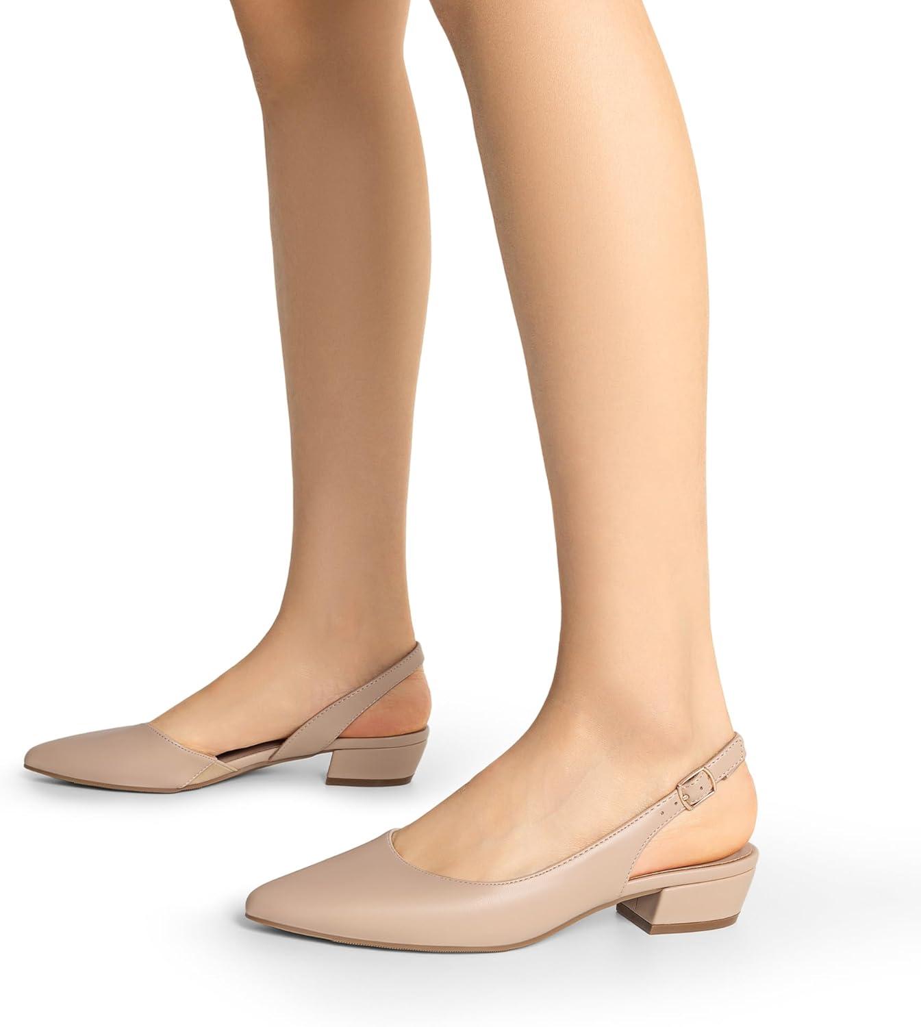 Featuring a chic pointed toe and stylish slingback design, these womens dress shoes offer a sophisticated look for any occasion. The 1.4-inch low-block heel provides a subtle lift, providing all-day elegance. These pumps keep you steady and comfortable from morning to night.