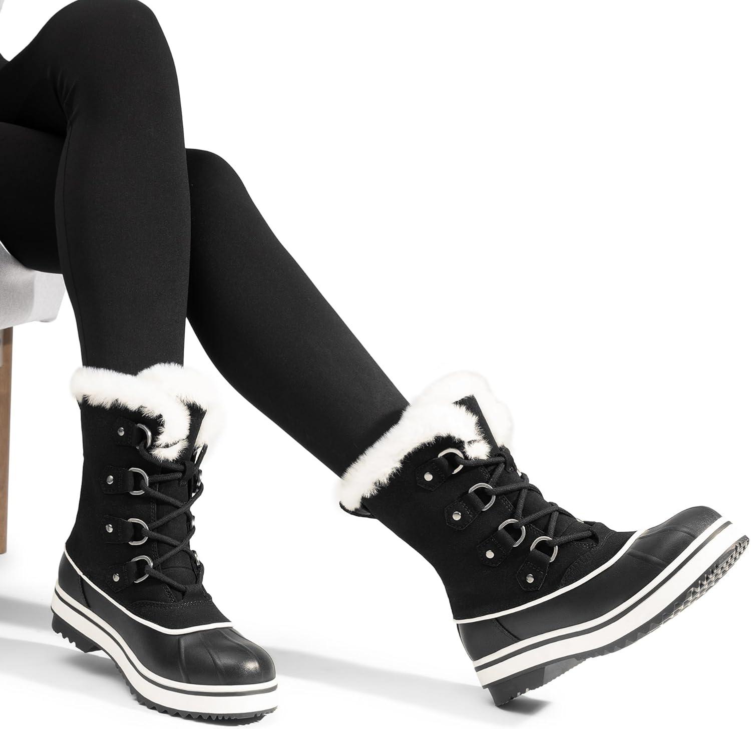 DREAM PAIRS Women’s Snow Winter Boots Mid Calf Waterproof Warm Faux Fur Lined Lace Up Anti-slip Outdoor Duck Boots(Black)