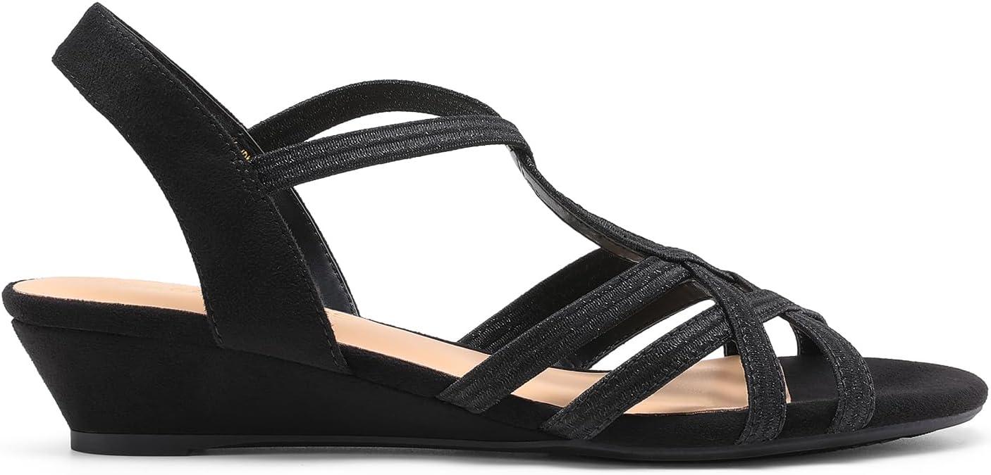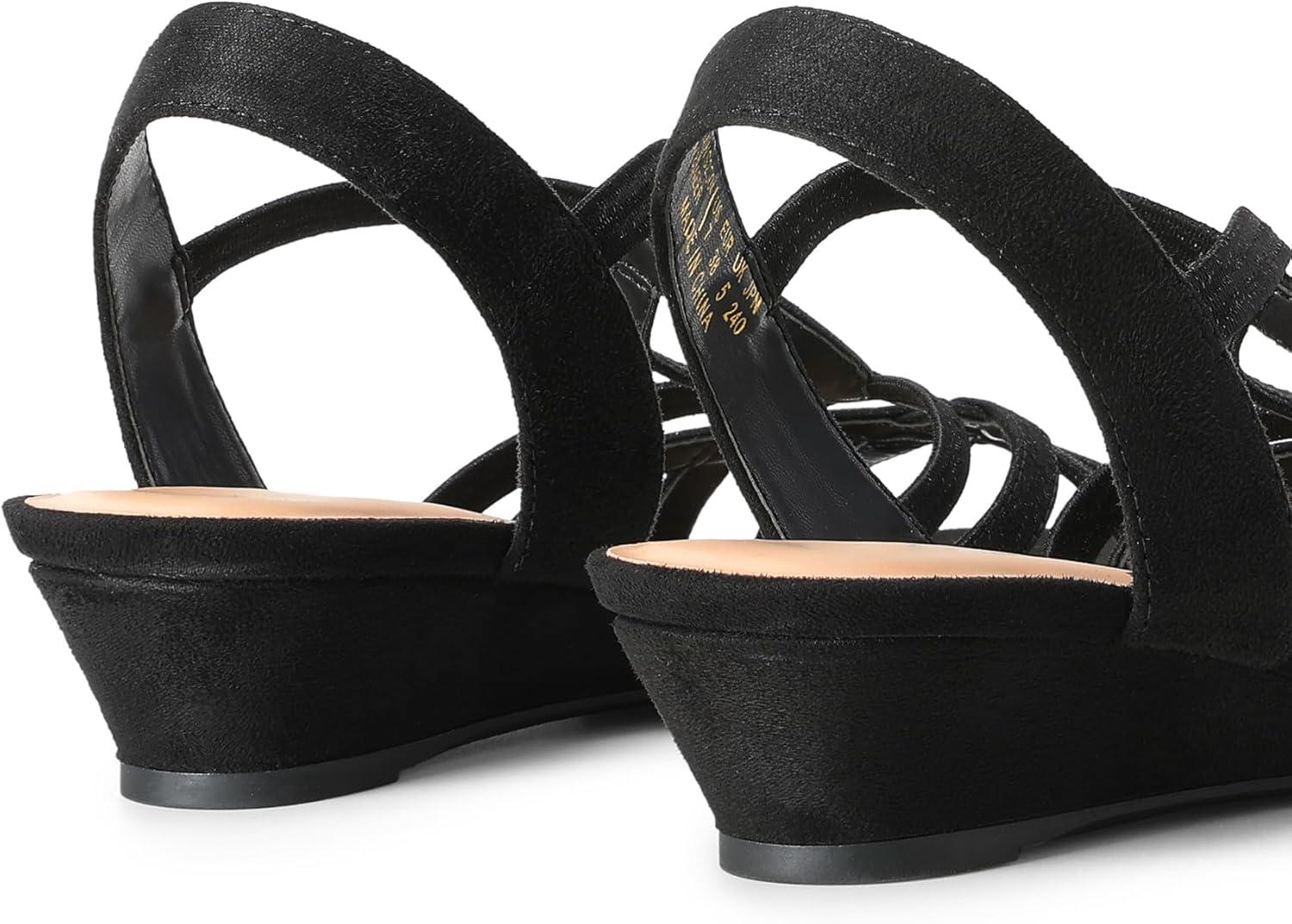 DREAM PAIRS Women’s Strappy Wrapped Dressy Wedge Sandals Comfortable Low Heel Casual Summer Shoes(Black)