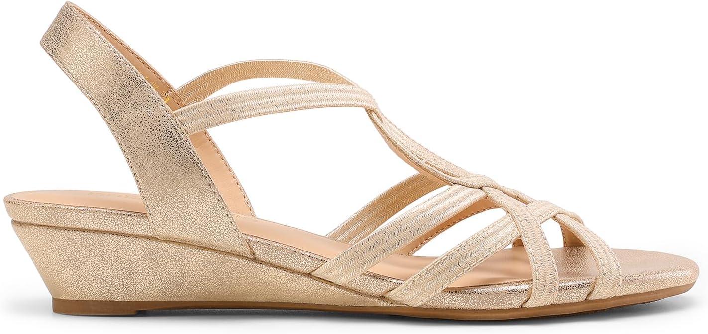 DREAM PAIRS Women’s Strappy Wrapped Dressy Wedge Sandals Comfortable Low Heel Casual Summer Shoes(Gold)