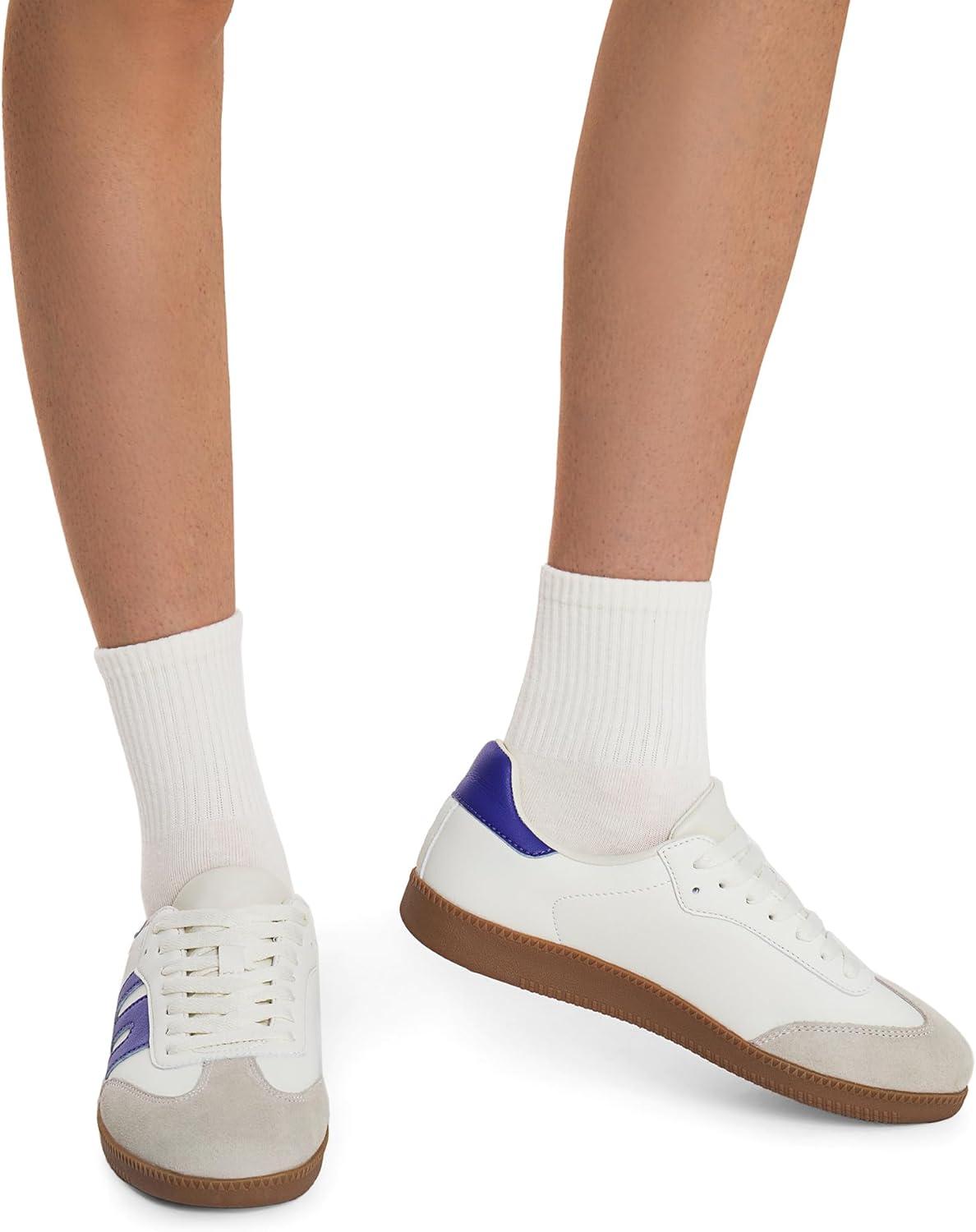 DREAM PAIRS Women’s Tennis Sneakers Walking Flat Low-Top Casual Lace-Up Comfortable Nia Fashion Sneakers Shoes(White/Purple)