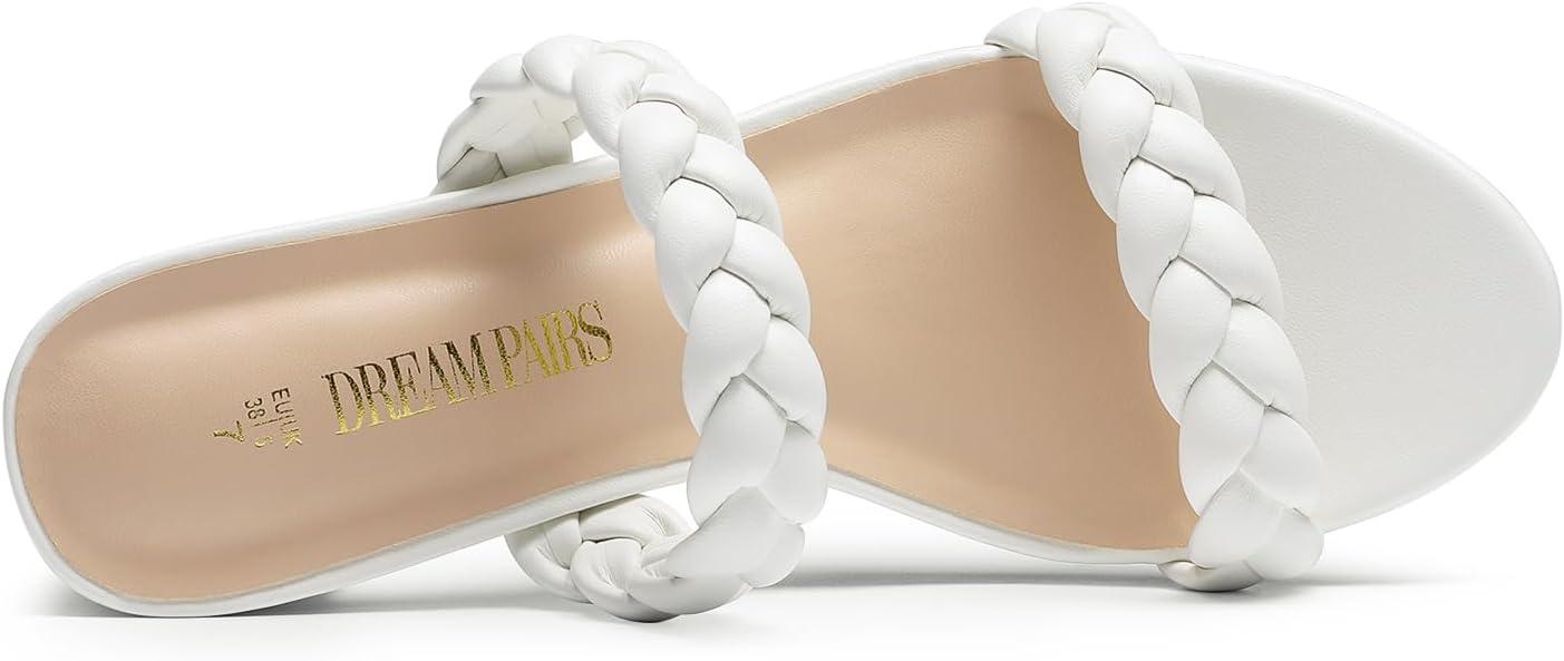 DREAM PAIRS Women’s Two Braided Strap Low Heels for Women Open Toe Block Chunky Heels Sandals Holiday Party Wedding Dress Pumps Shoes(White)