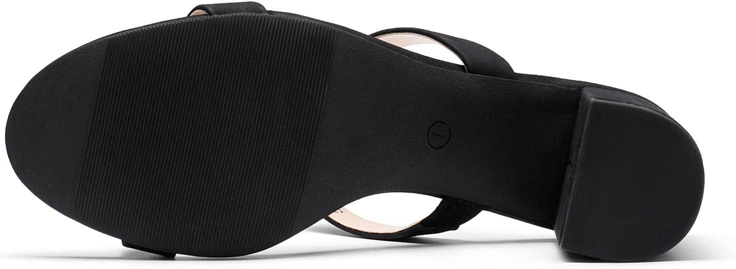 DREAM PAIRS Women’s Two Strap Open Toe Low Block Chunky Heels Sandals Dress Pumps Casual Summer Mules Shoes(Black-nubuck)