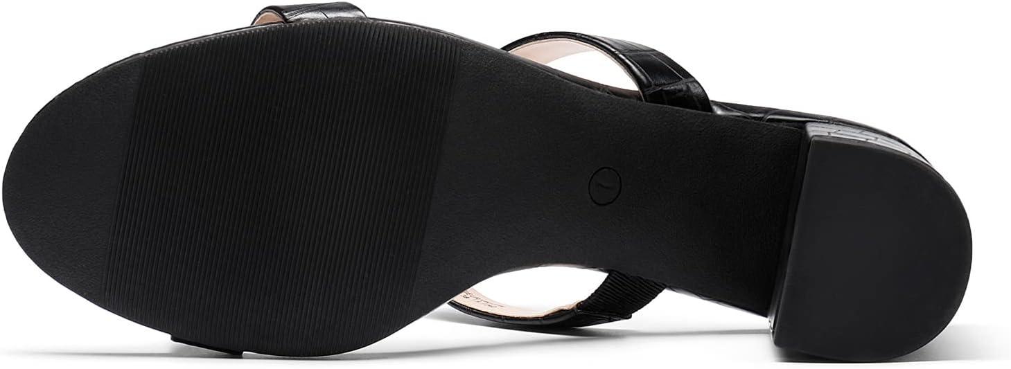 DREAM PAIRS Women’s Two Strap Open Toe Low Block Chunky Heels Sandals Dress Pumps Casual Summer Mules Shoes(Black-stone)