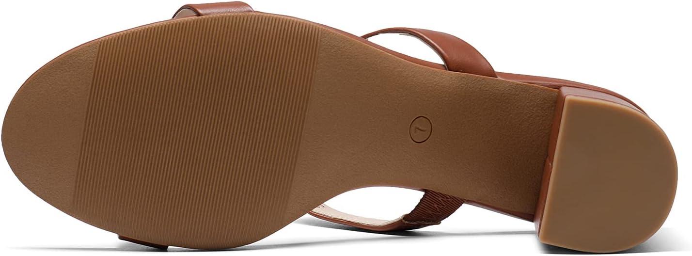 DREAM PAIRS Women’s Two Strap Open Toe Low Block Chunky Heels Sandals Dress Pumps Casual Summer Mules Shoes(Toffee)