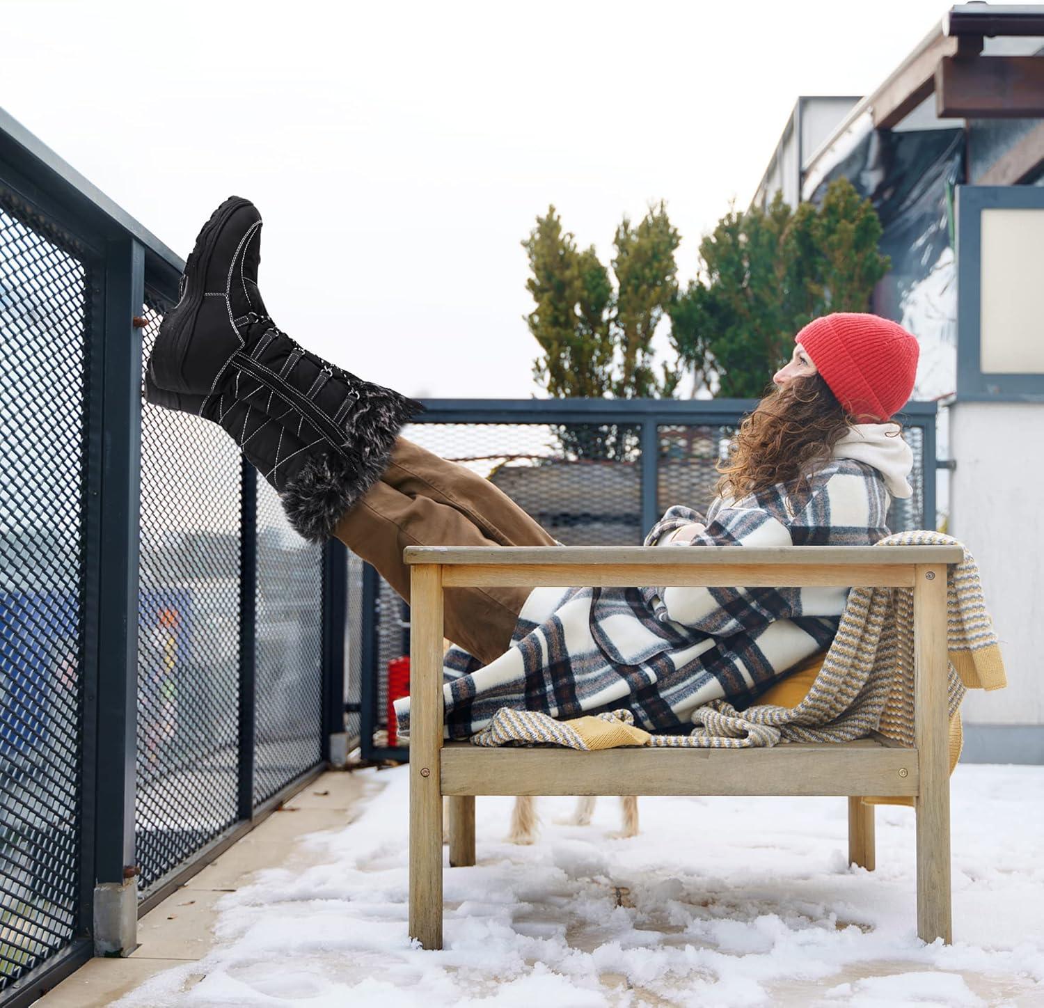 DREAM PAIRS Women’s Warm Faux Fur Lined Mid-Calf Winter Snow Boots(Maine/Black)