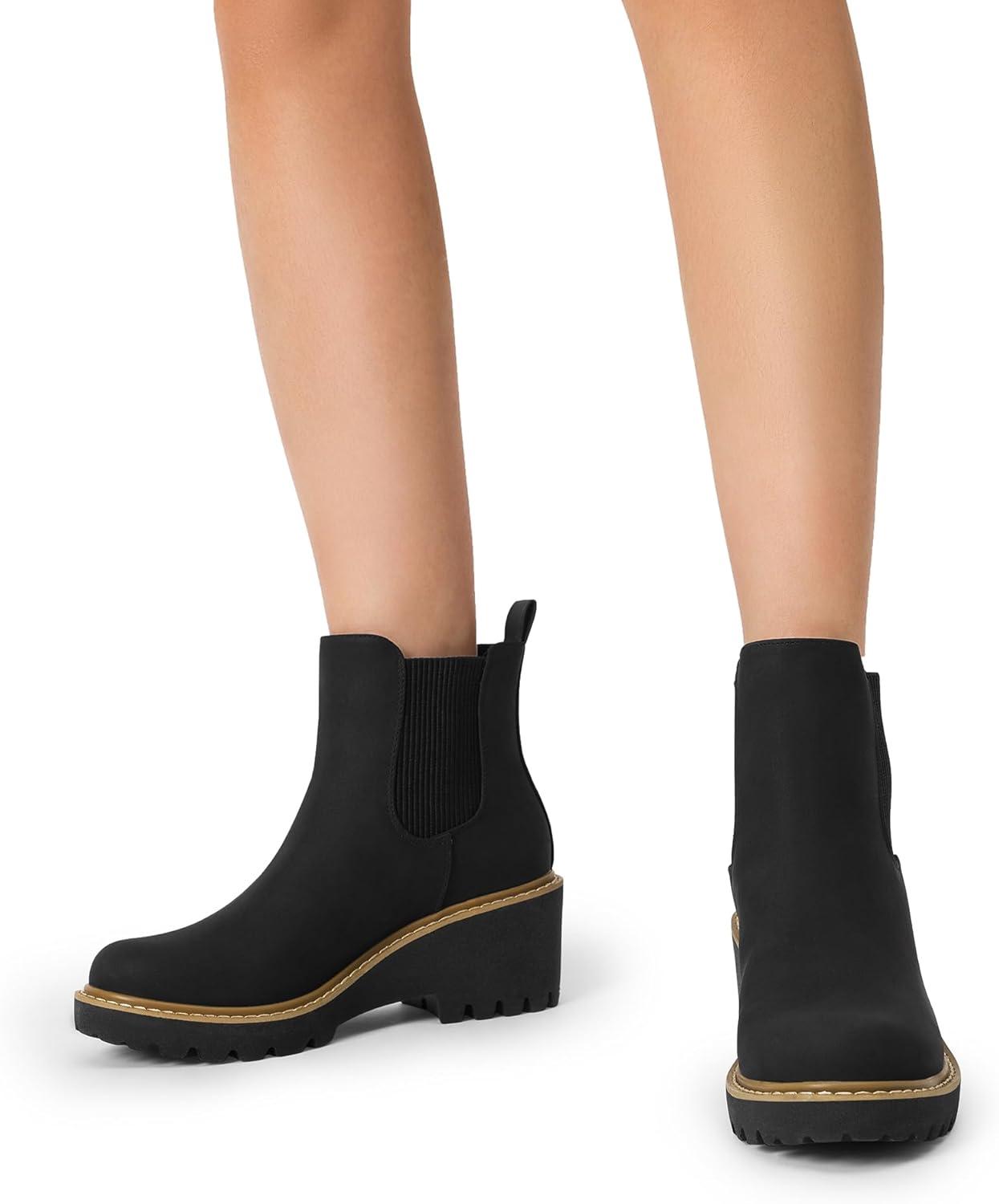 DREAM PAIRS Women’s Wedge Chelsea Ankle Boots Fashion Round Toe Low Wedge Heel Platform Booties Shoes(Black-nubuck)