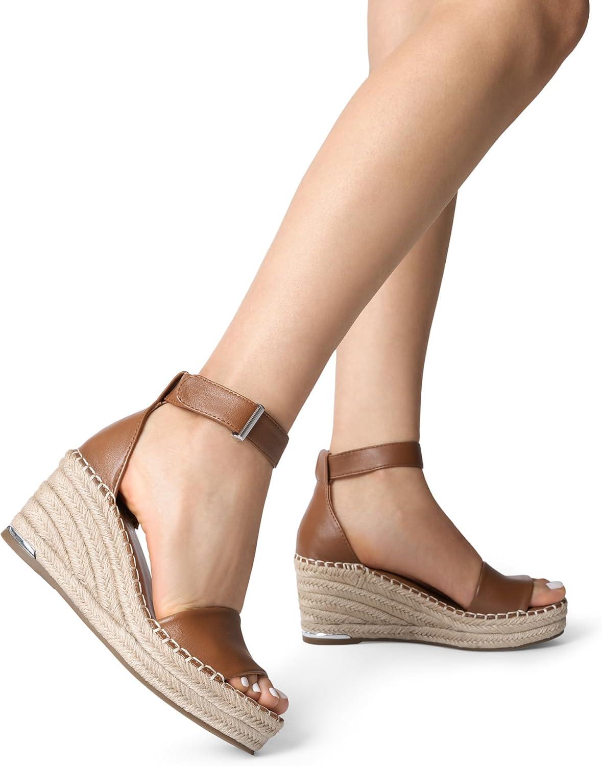 DREAM PAIRS Women’s Wedge Sandals Open Toe Espadrilles Sandals Comfortable Dressy Ankle Strap Platform Sandals Suitable for Work Beach Summer Shoes(Brown)