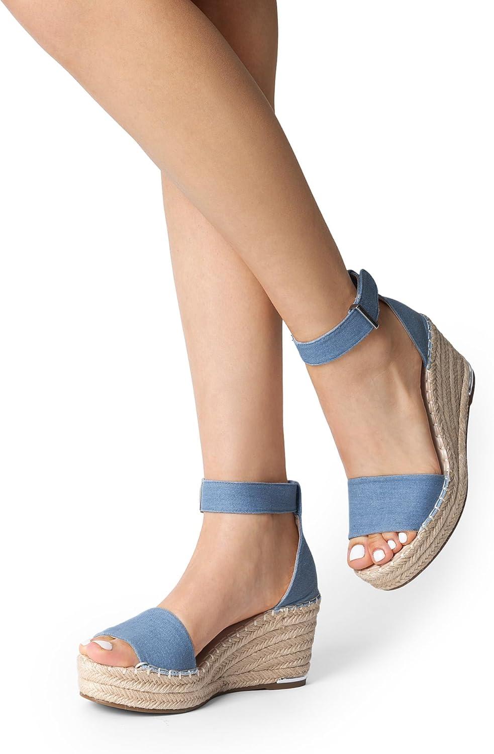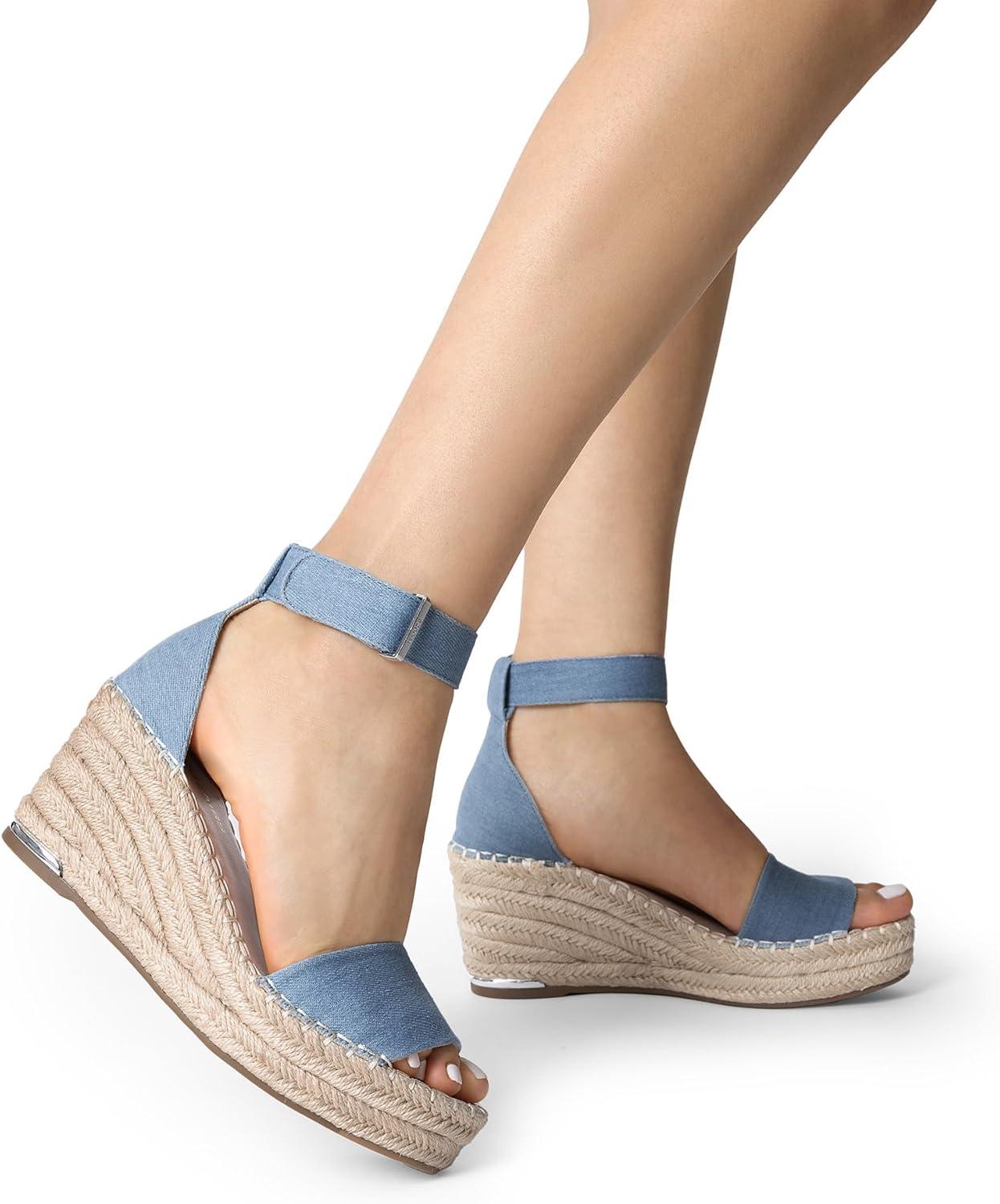 DREAM PAIRS Women’s Wedge Sandals Open Toe Espadrilles Sandals Comfortable Dressy Ankle Strap Platform Sandals Suitable for Work Beach Summer Shoes(Denim Blue)