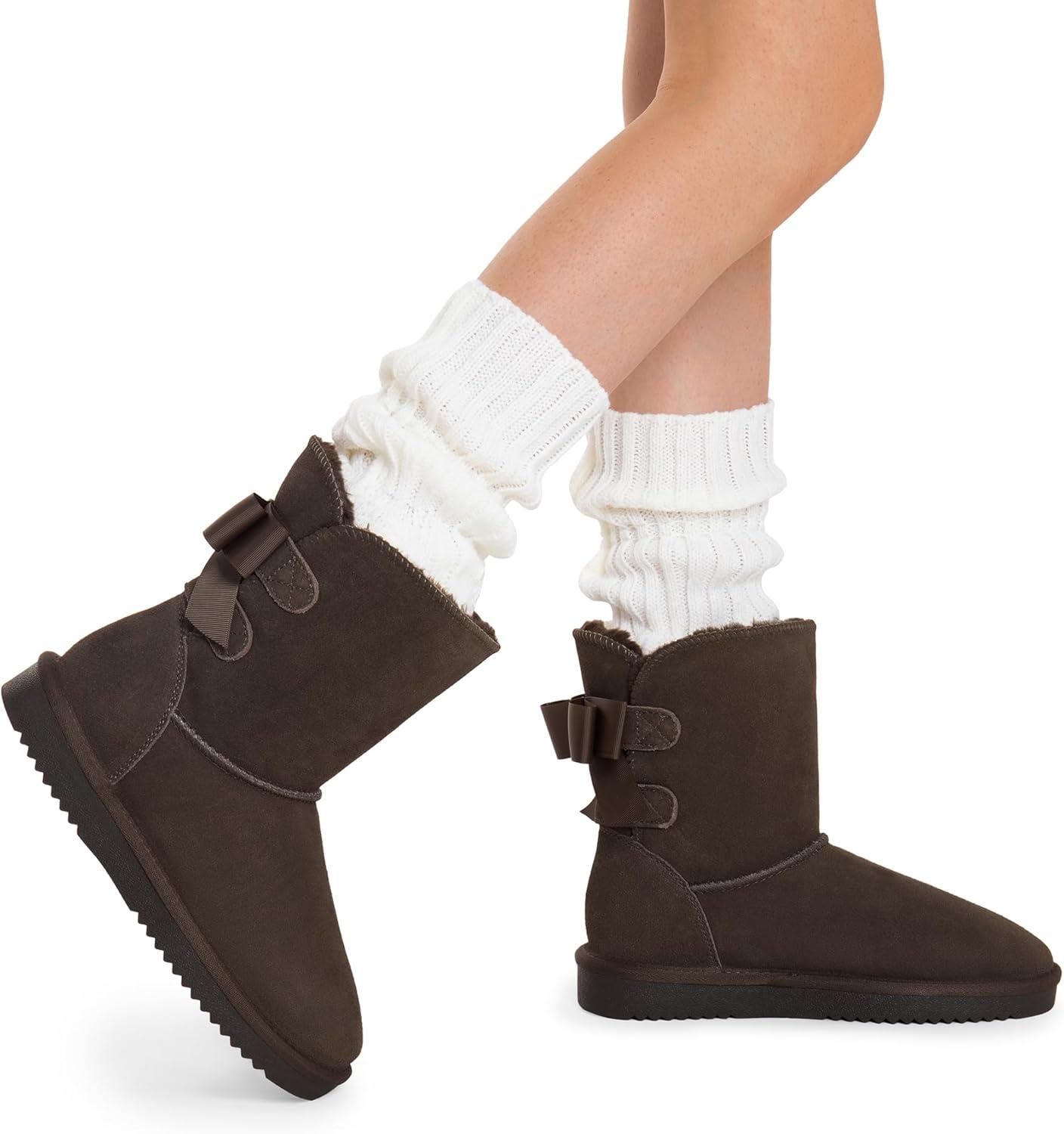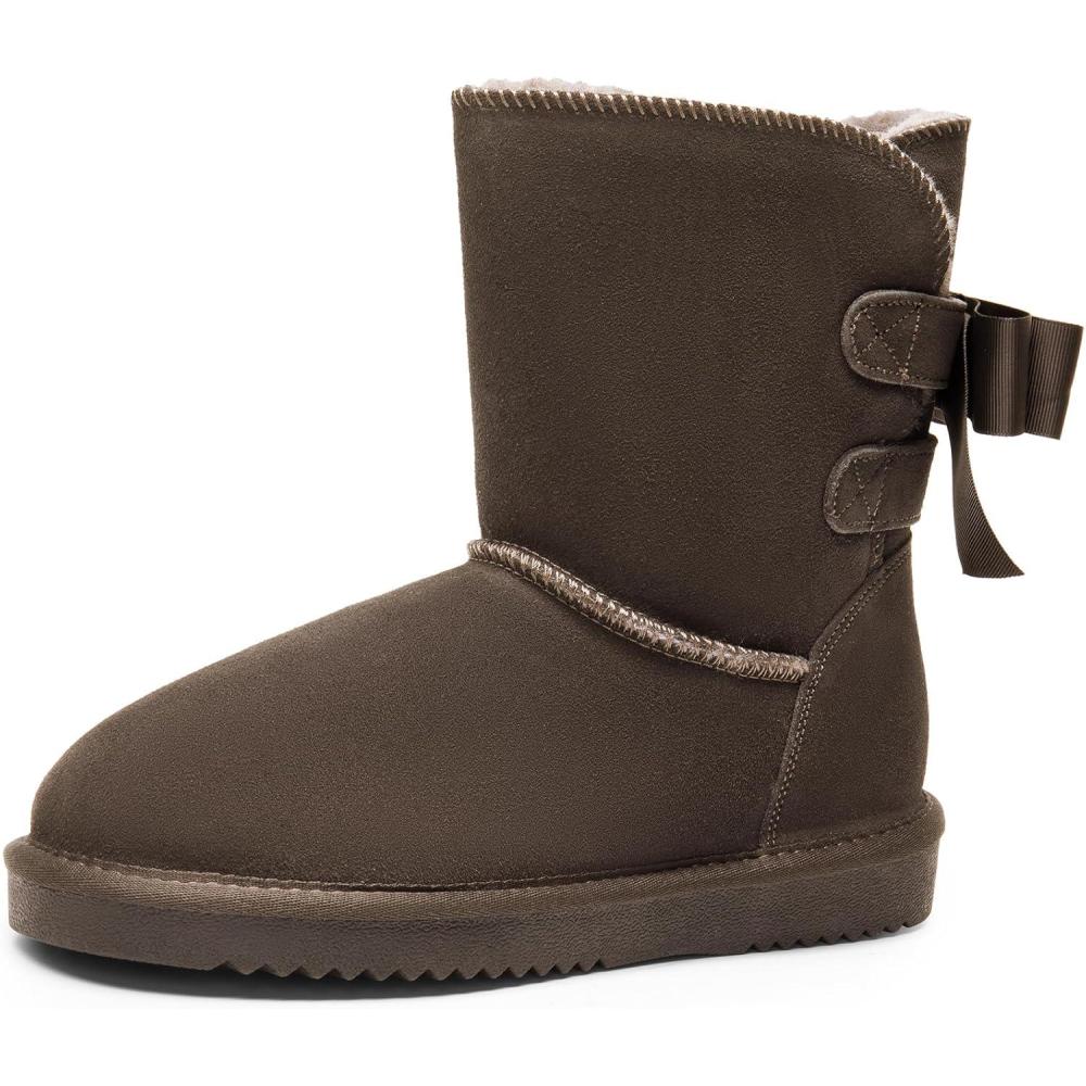 DREAM PAIRS Women’s Winter Snow Boots FuzzyChic Bow Genuine Suede Leather Faux Fur Lining Memory Foam Warm Winter Short Booties for Outdoor Indoor(Taupe)