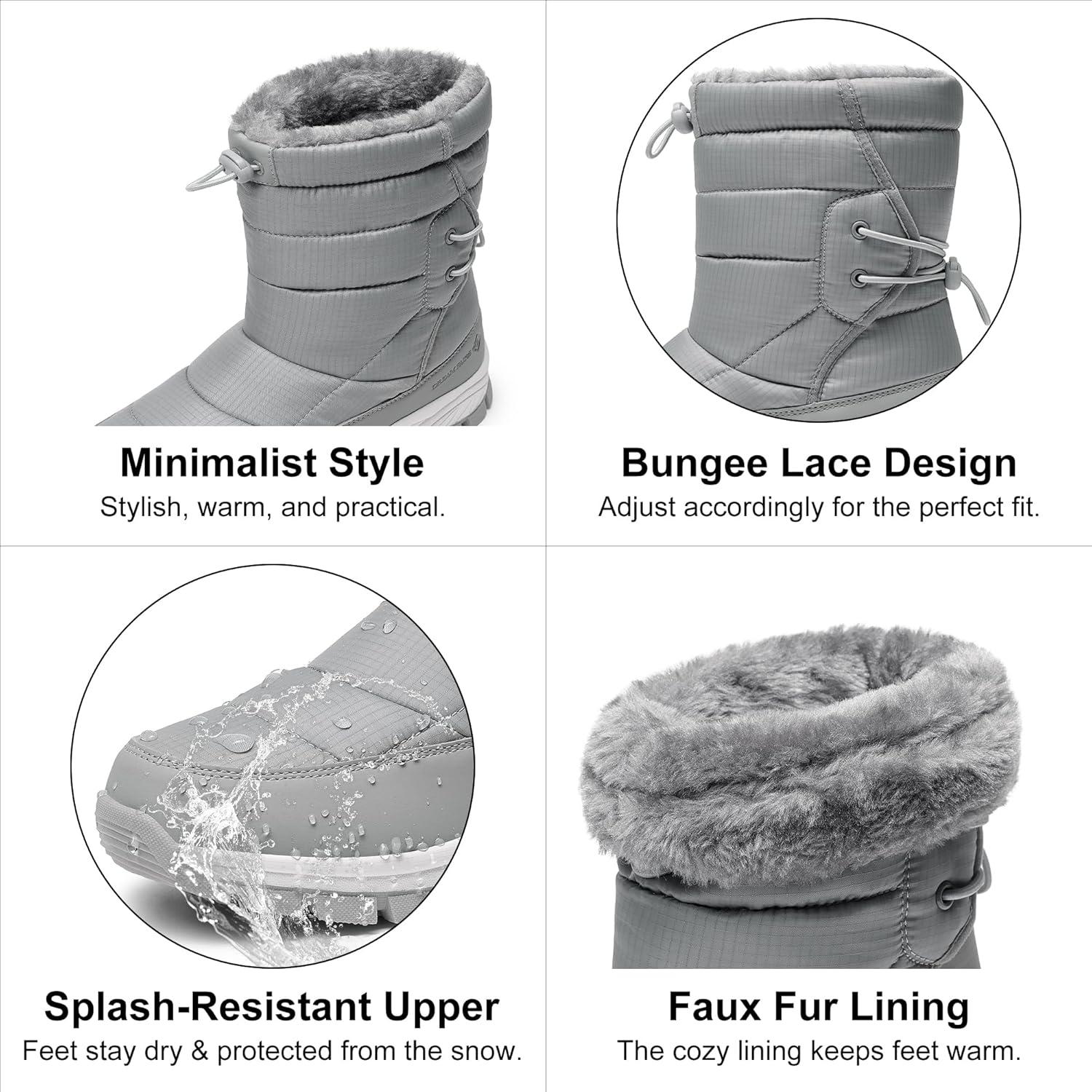 DREAM PAIRS Women’s Winter Snow Boots Waterproof Lightweight Warm Fashion Janara Mid Calf Boot(Light Grey)