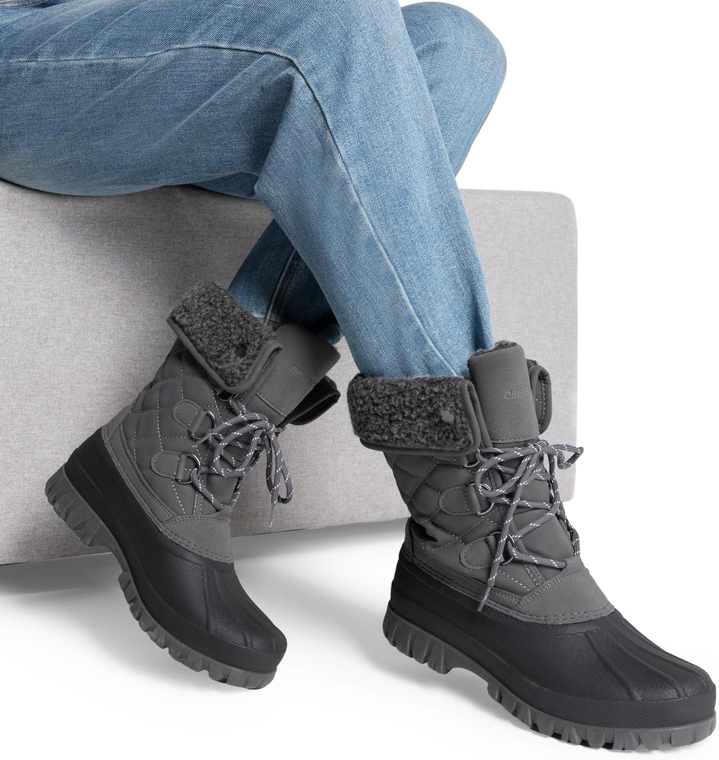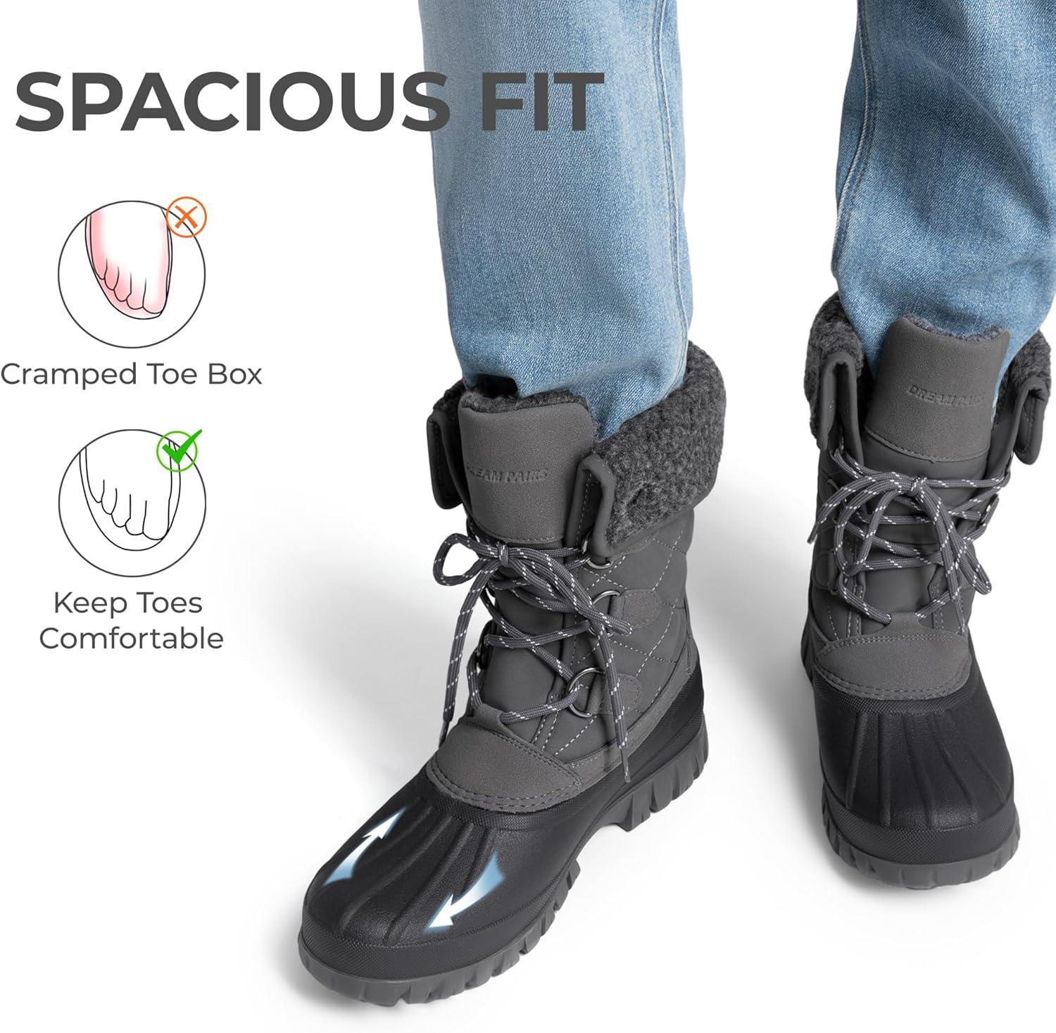 DREAM PAIRS Womens Winter Snow Duck Boots,Waterproof Mid Calf Anti-slip Stability Lace Up Faux Fur Lining Warm Cozy Boots Outdoor Supportive Insole(Grey)