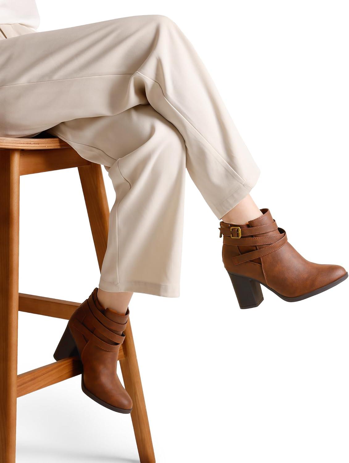 TOETOS Women’s Chunky High Heel Ankle Boots Close Toe Fall Heeled Booties Shoes(Brown-pu)