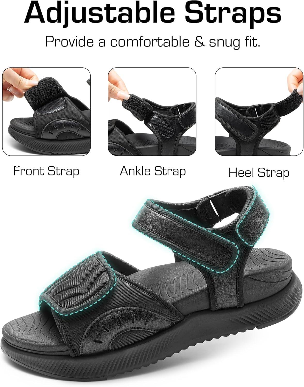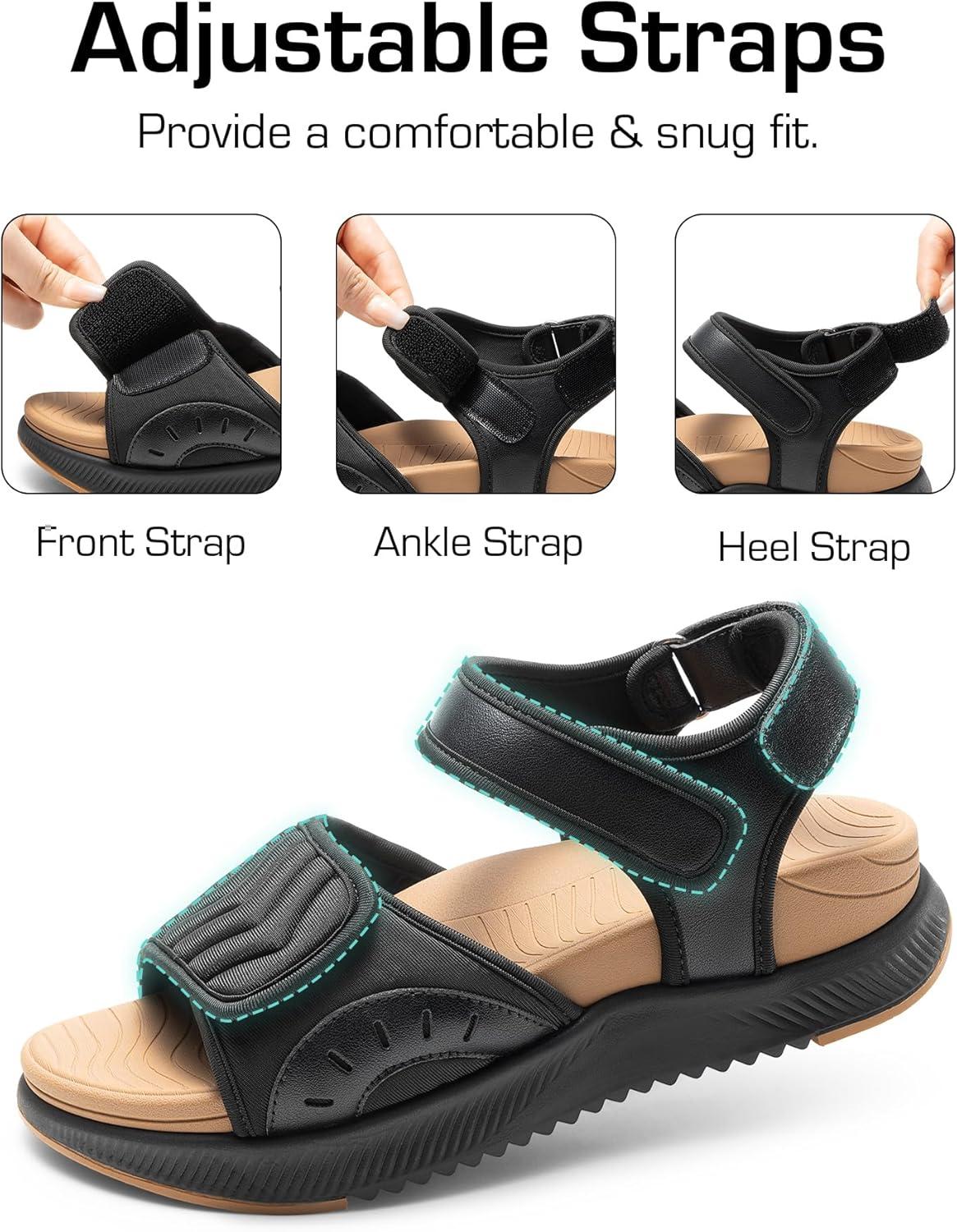 DREAM PAIRS Womens Hiking Sandals Arch Support Platform Orthopedic Sandals Comfortable Open Toe Walking Summer Shoes Lightweight Outdoor Athletic Sport Water Sandals(Black)
