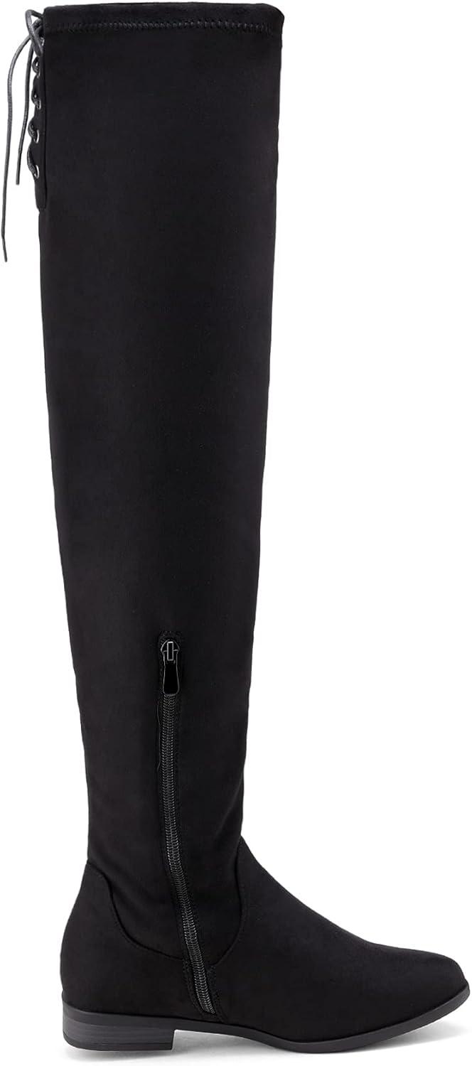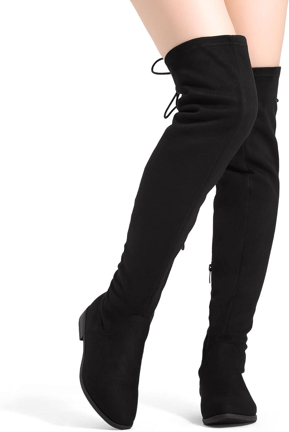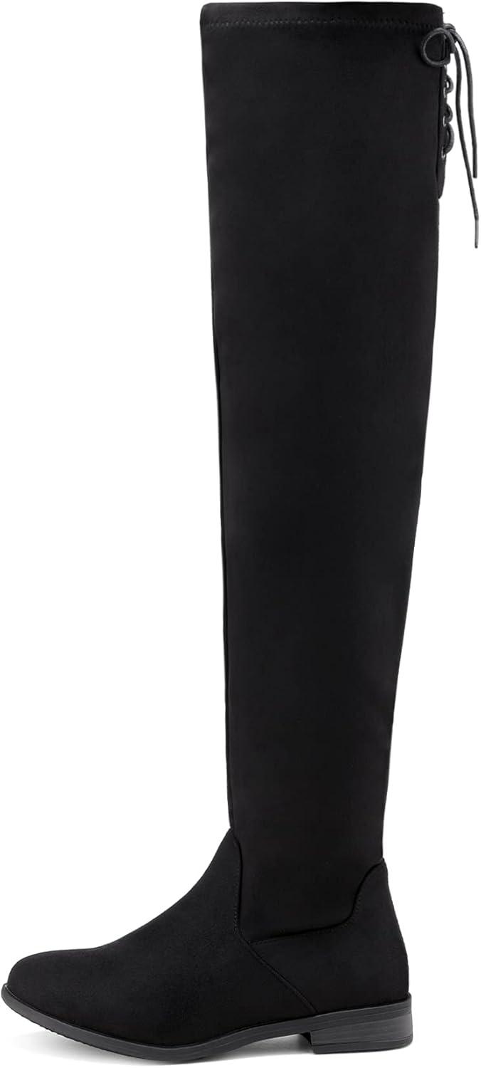 DREAM PAIRS Women’s Over The Knee Stretch Thigh High Boots Chunky High Heels Pointed Toe Long Fall Boots(Black-suede)