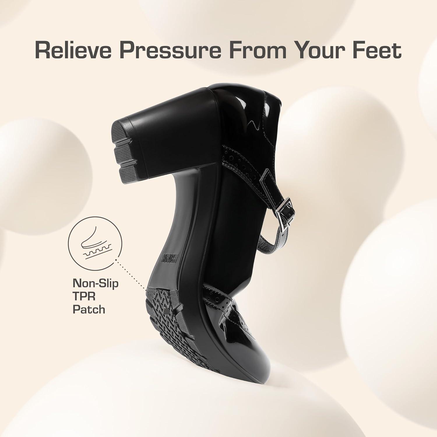 DREAM PAIRS Women’s Oxfords Mary Jane Dress Shoes Heels for Women(Black-pat)