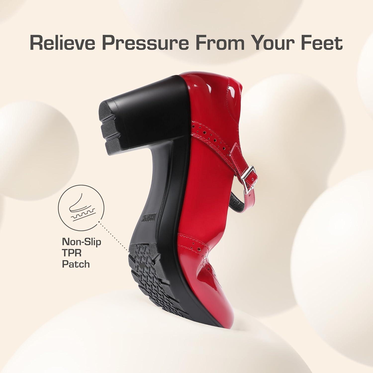 DREAM PAIRS Women’s Oxfords Mary Jane Dress Shoes Heels for Women(Red-pat)