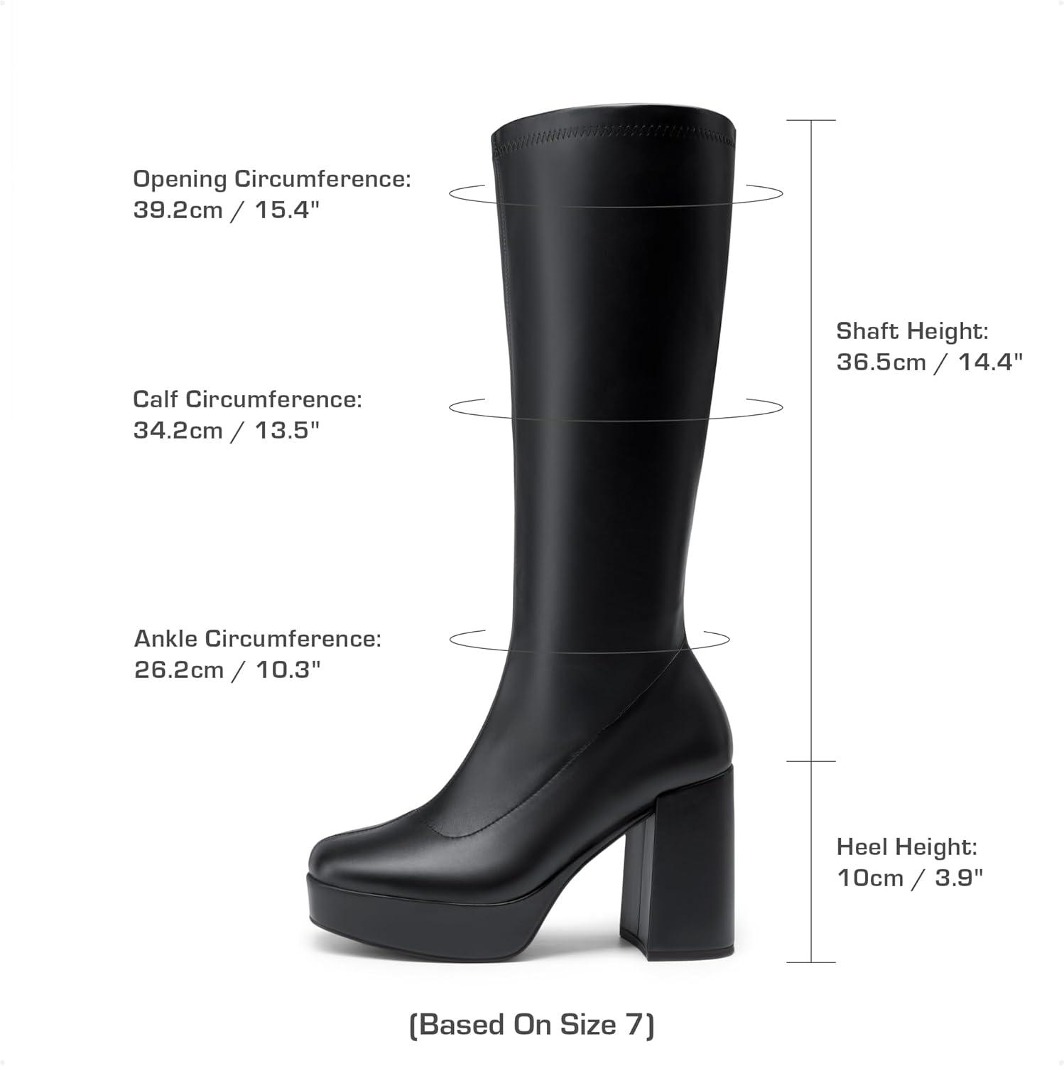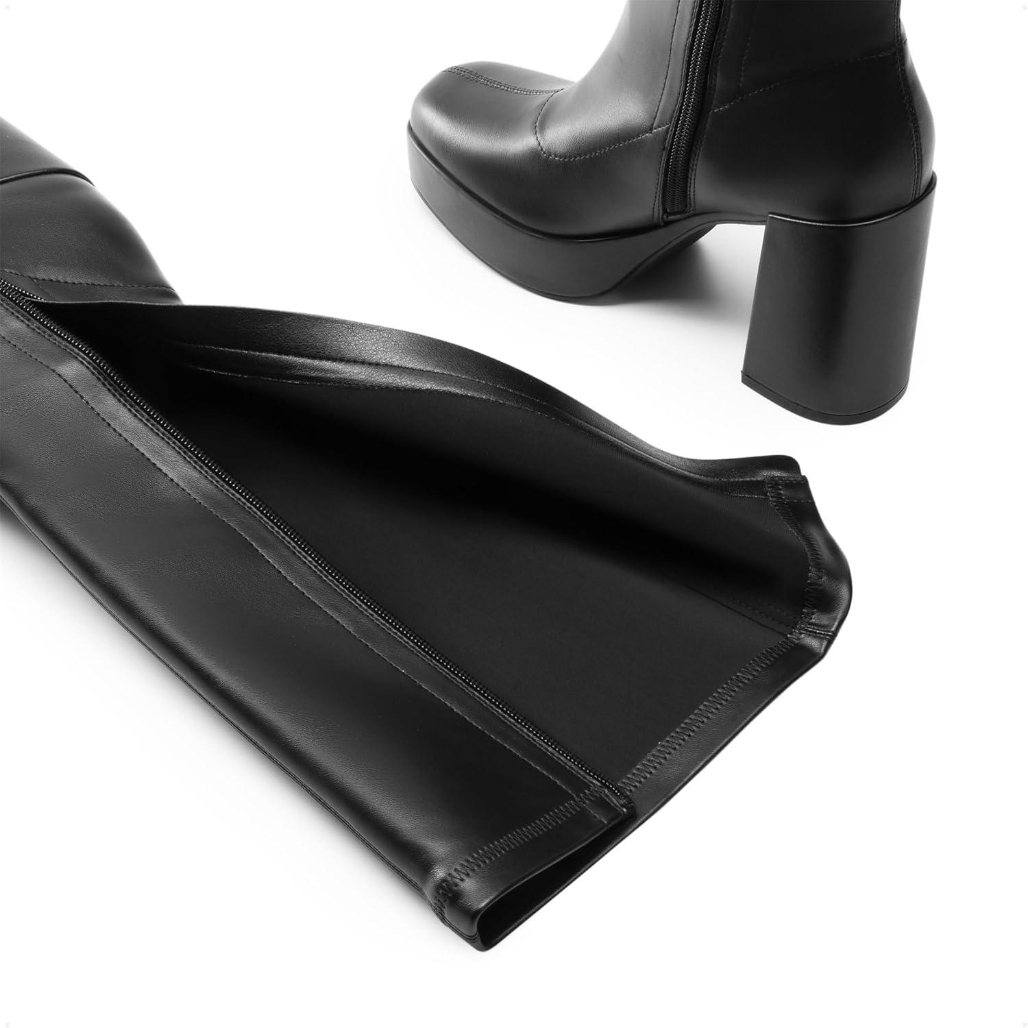 DREAM PAIRS Women’s Platform Knee High Boots Chunky Block Heel Side Zipper Cute Gogo Boots(Black-pu)
