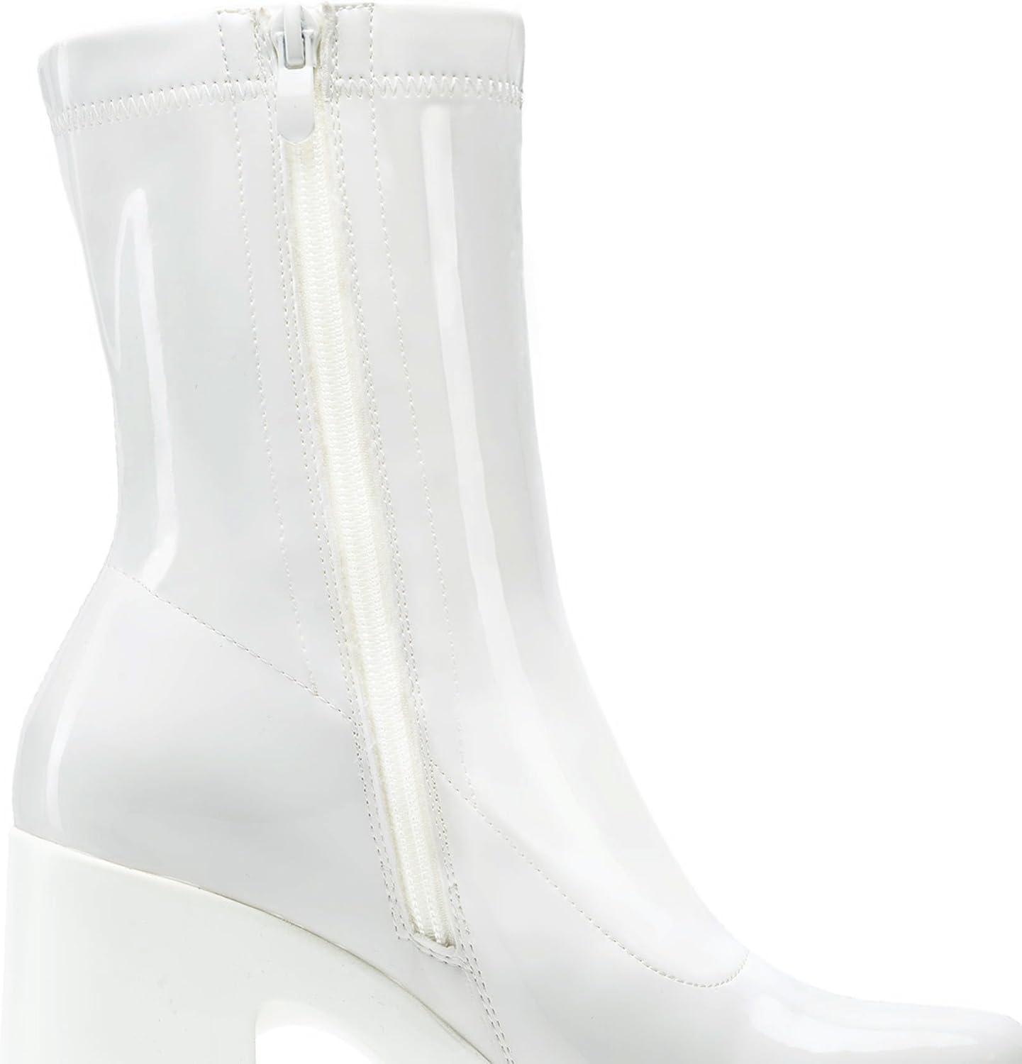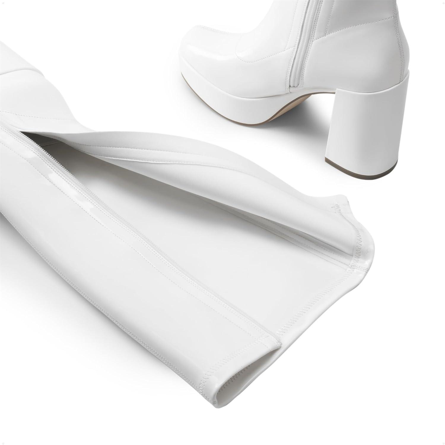 DREAM PAIRS Women’s Platform Gogo Ankle Boots High Chunky Block Heel Square Toe Booties Shoes(White-pat)