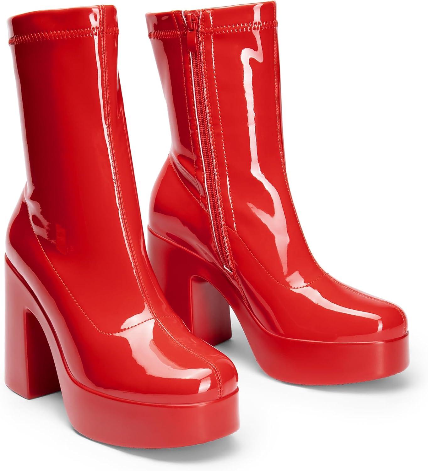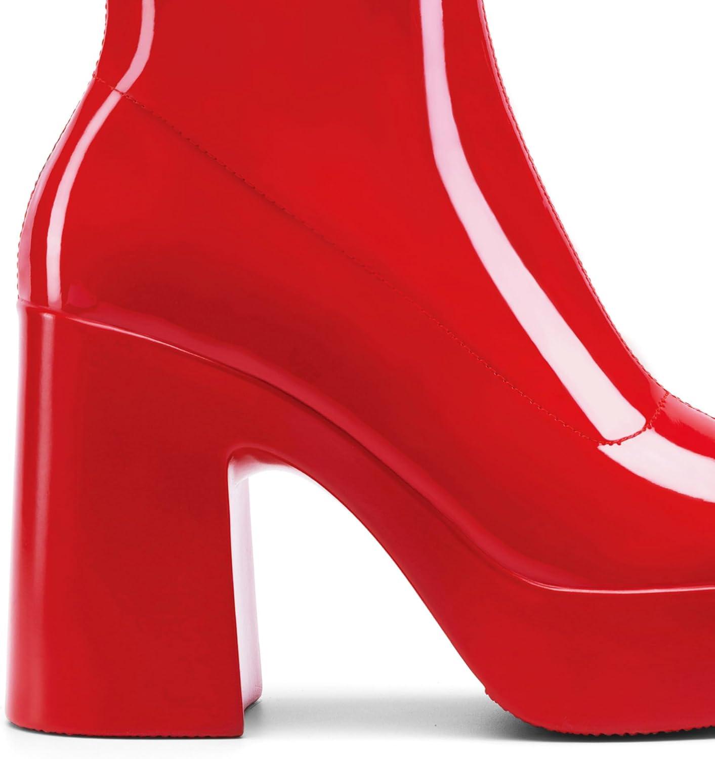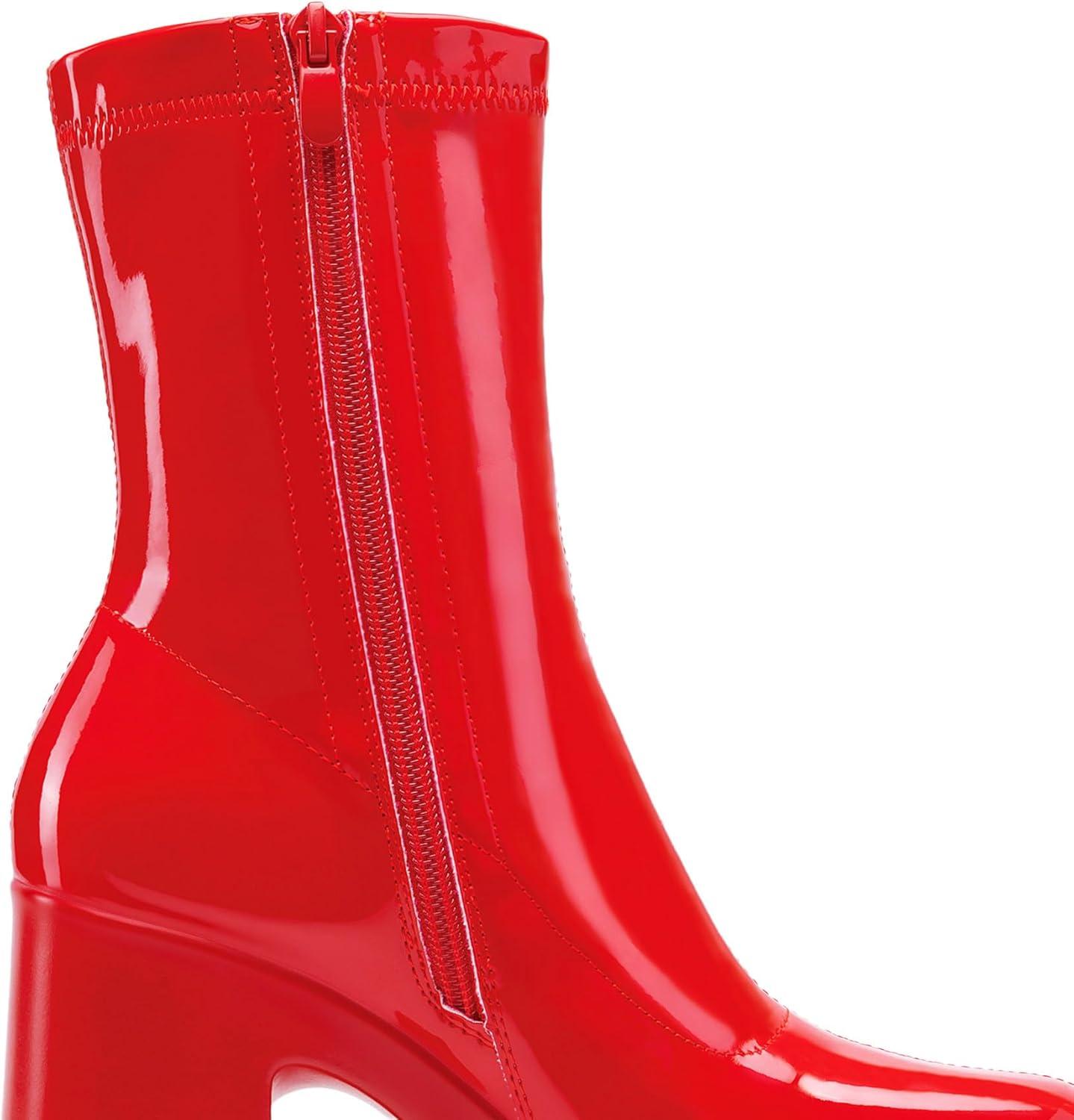 DREAM PAIRS Women’s Platform Gogo Ankle Boots High Chunky Block Heel Square Toe Booties Shoes(Red-pat)