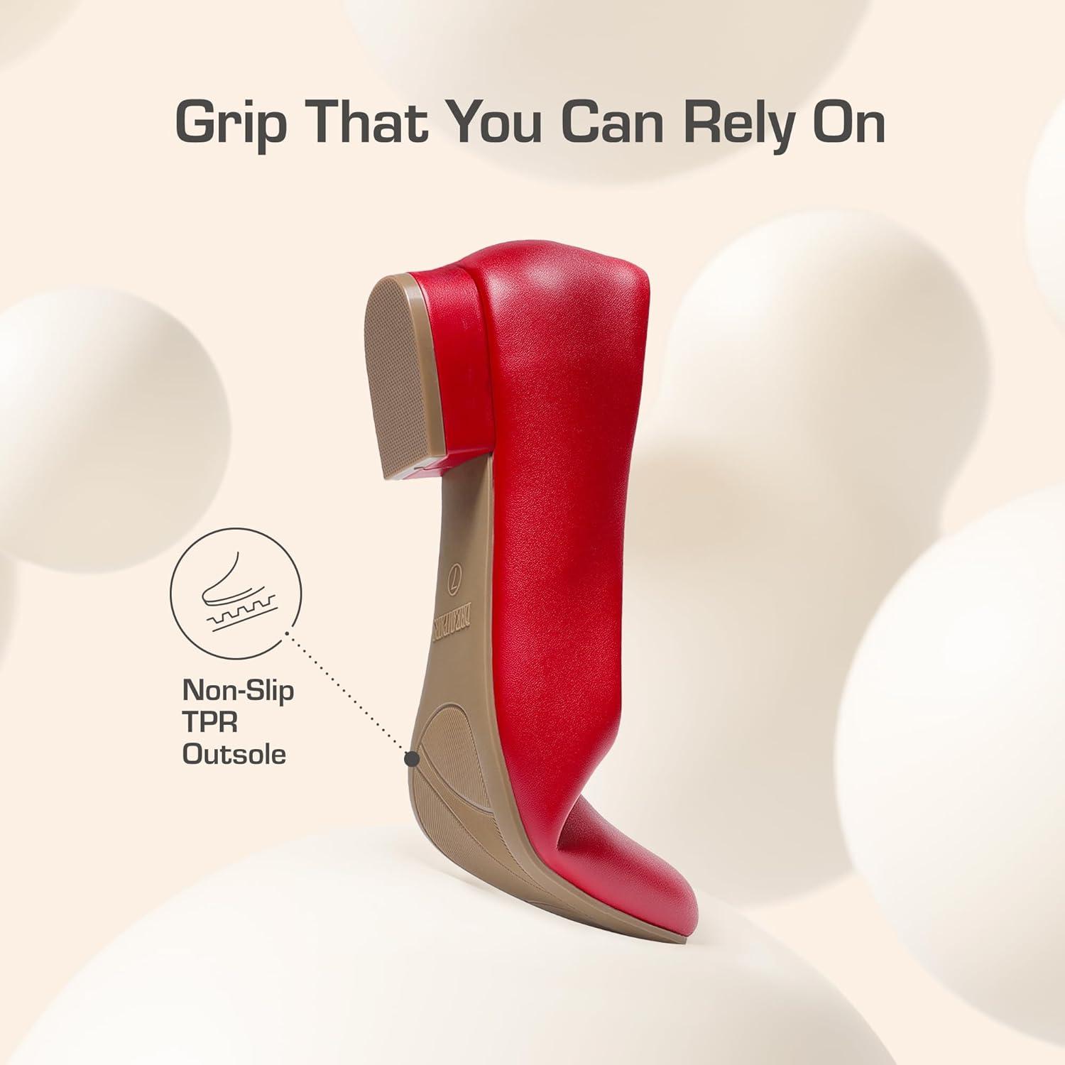 DREAM PAIRS Women’s Pumps Low Chunky Closed Toe Heels for Women Comfortable Casual Slip-On Dress Shoes for Wedding Work Office Party(Red-pu)
