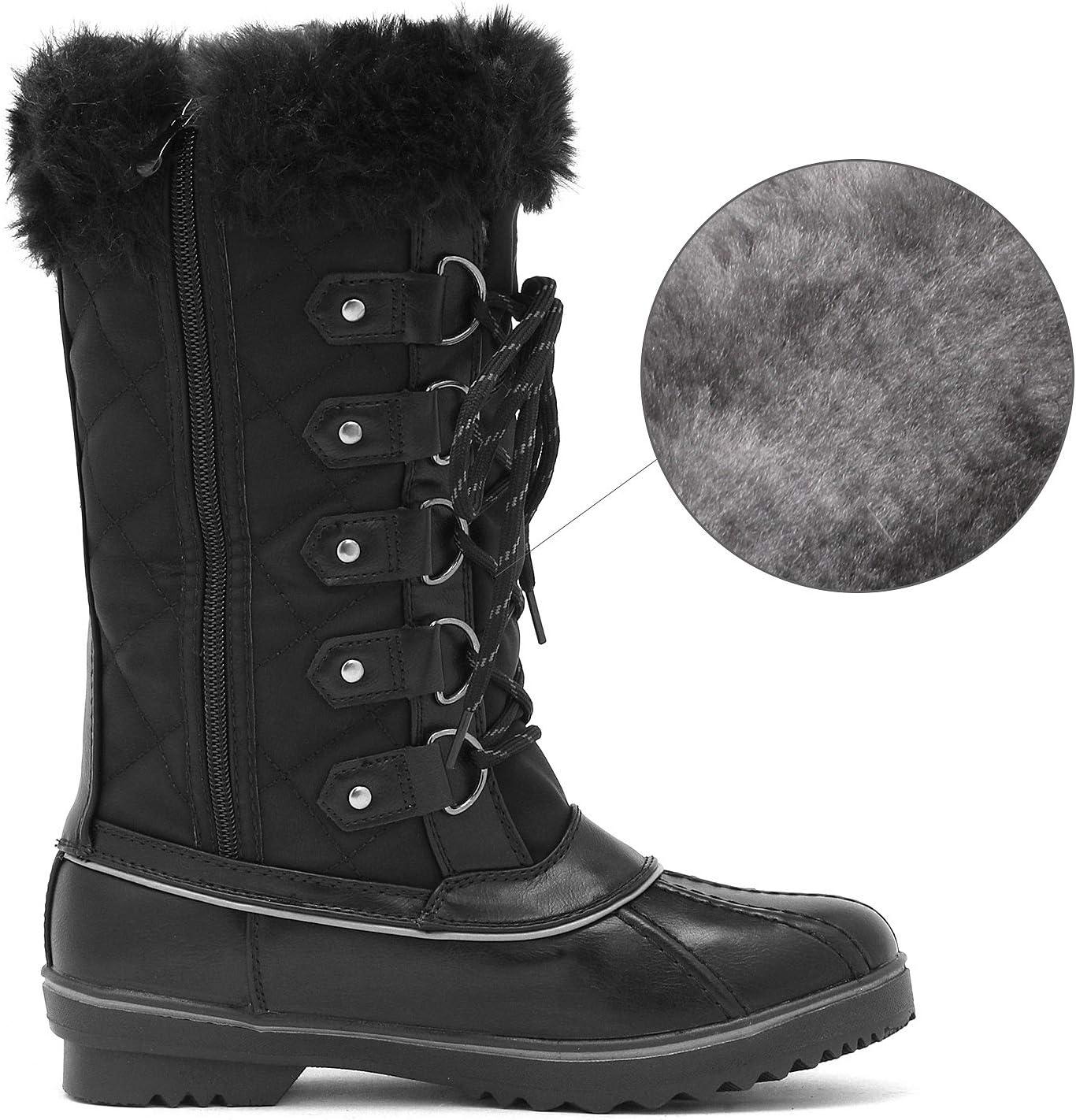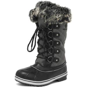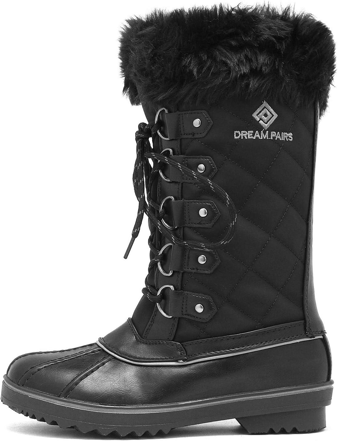 DREAM PAIRS Women’s River_1 Mid Calf Waterproof Winter Snow Boots(Black Grey)