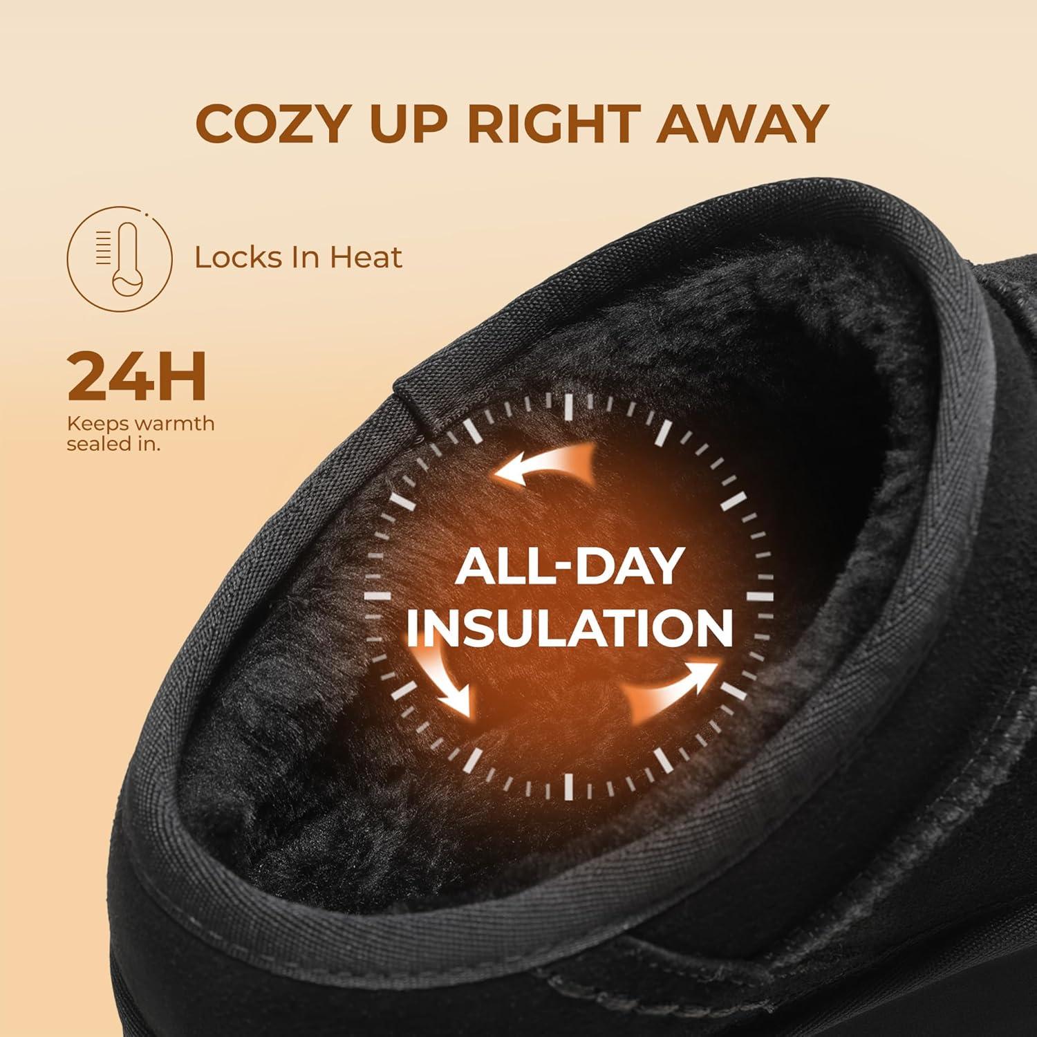 DREAM PAIRS Women’s Slippers Platform Genuine Suede Slip-On Memory Foam Cozy Fluffy Warm Comfy Furry House Shoes for Outdoor Indoor(Black)