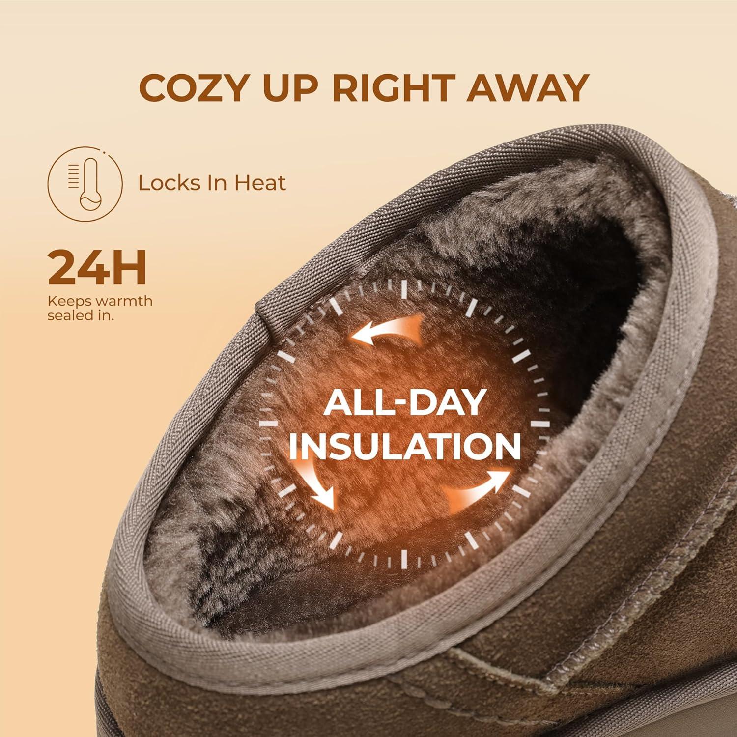 DREAM PAIRS Women’s Slippers Platform Genuine Suede Slip-On Memory Foam Cozy Fluffy Warm Comfy Furry House Shoes for Outdoor Indoor(Taupe)