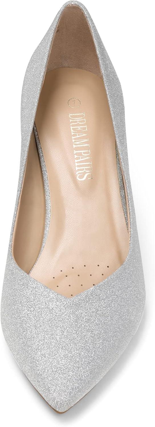 DREAM PAIRS Women’s Comfortable Ballet Dressy Work Flats, Round Toe Slip on Office Shoes(Silver)