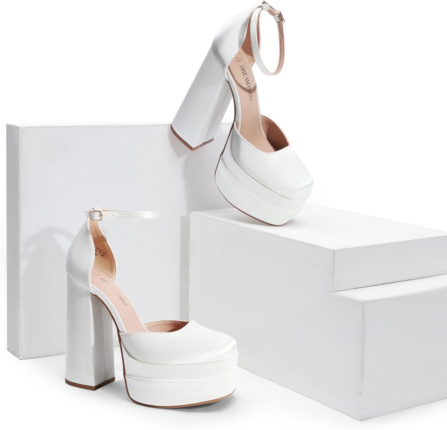 Save big on DREAM PAIRS Women’s High Chunky Platform Closed Toe Block Heels Square Toe Ankle Strap Dress Wedding Party Pumps Shoes Aurelia(White) during our summer blowout sale. Limited quantities available.